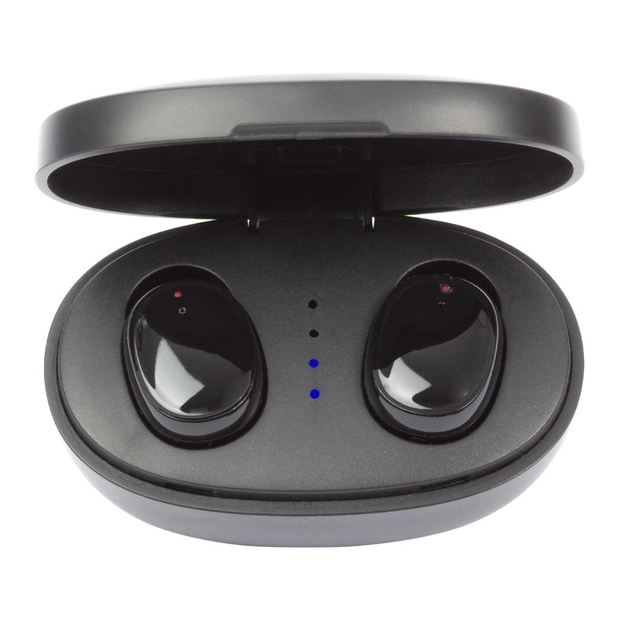 Audífonos Auriculares inalámbricos negros de Alta Fidelidad modelo "Echo". Cada auricular cuenta con un botón touch que permite subir y bajar el volumen, contestar y finalizar llamadas, reproducir y pausar música. Tienen tecnología Bluetooth 5.0, una duración de batería de aproximadamente 4 horas y un estuche de carga de 200 mAh, el cual se carga a través de un cable USB – Type C. Tiempo de Carga: 2 horas. Diámetro del Mando: 8MM, Sensibilidad: 93+-3dB, Impedancia: 32 Omega, Frecuencia: 20Hz-20KHz, Voltage de la Batería: 3.7V +- 0.5V, Distancia: 10m. Máxima Potencia: 5mW. Presentación en caja de regalo impresa a todo color.