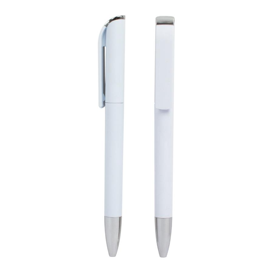Bolígrafo blanco "Angel", con clip ancho plano, especial para imprimir sobre él. Escritura azul.