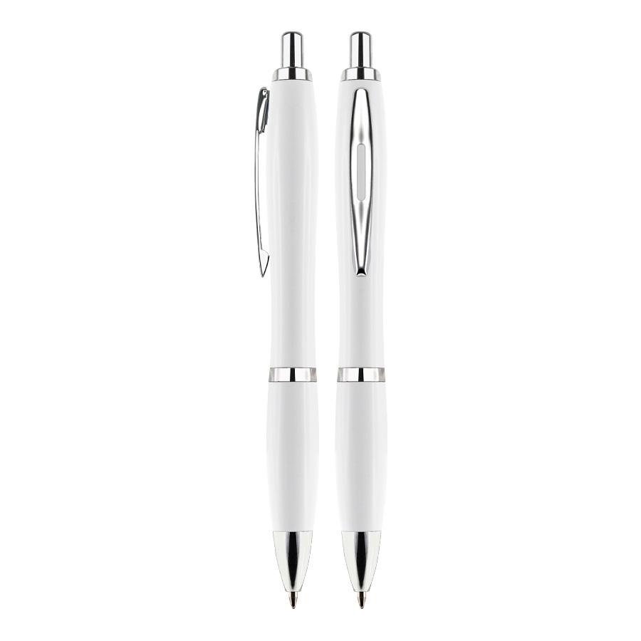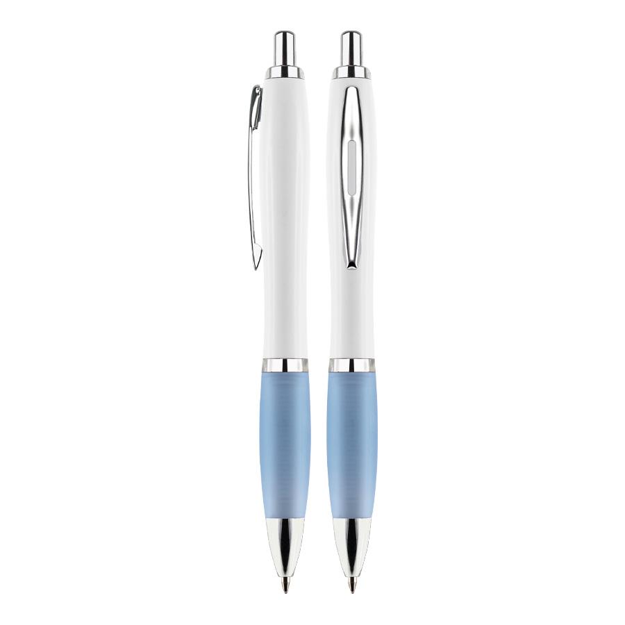 Bolígrafo plástico blanco sólido, modelo "Wind stella". Escritura Azul.