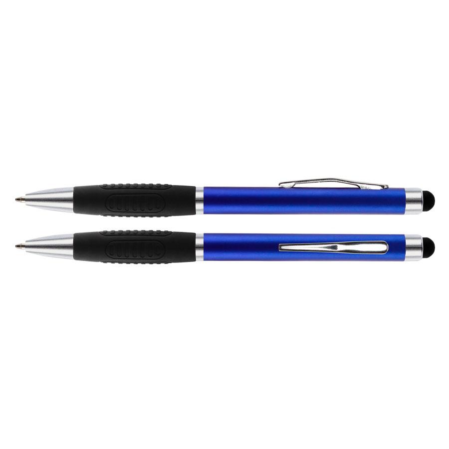 Bolígrafo "Alabama" con cuerpo de color metalizado y puntero touch-screen para pantalla táctil. Escritura azul.