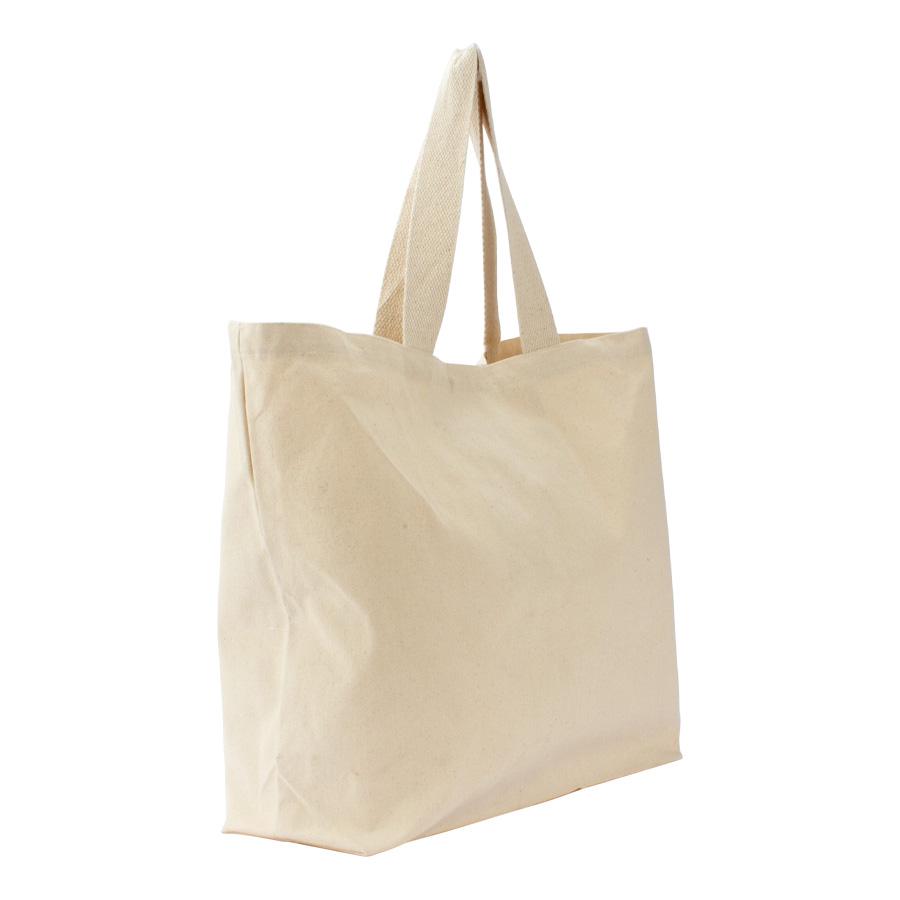Bolsa grande 100% Canvas Algodón natural de 10oz. Manillas cintas de Algodón natural de 50 x 4 cm. aprox. c/u. Incluye cierre velcro interior central y bolsillo interior de 15×15 cm.