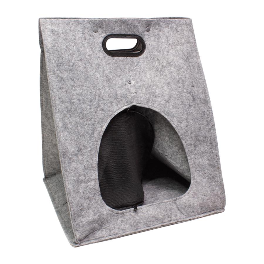 Bolso de Fieltro para transportar mascotas pequeñas (gatos, perros de razas pequeñas). Tela Fieltro Poliéster 450g/m2. Incluye asas reforzadas de plástico negro, 2 broches de cierre superior, cubierta rígida reforzada para la base del bolso y ventana de malla negra removible, con cierre-eclair.