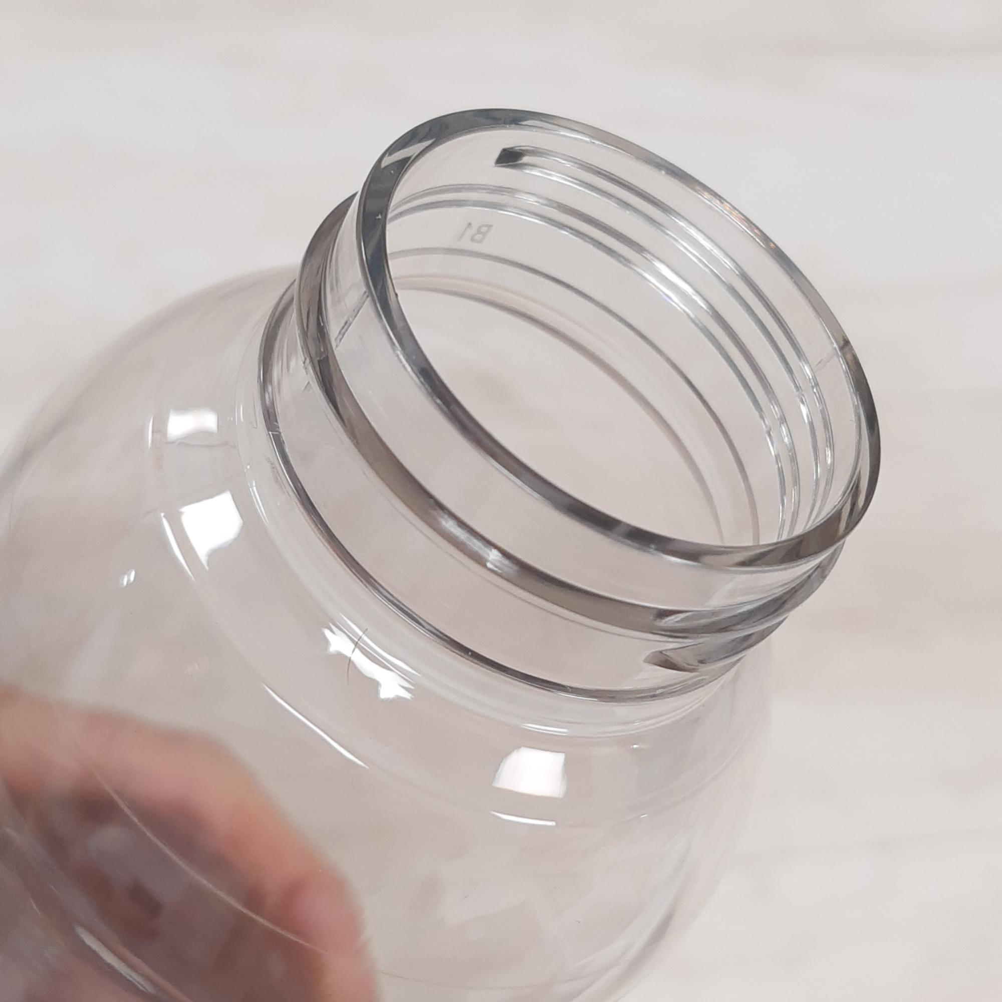- Botella de plástico transparente con tapa a rosca plástica.