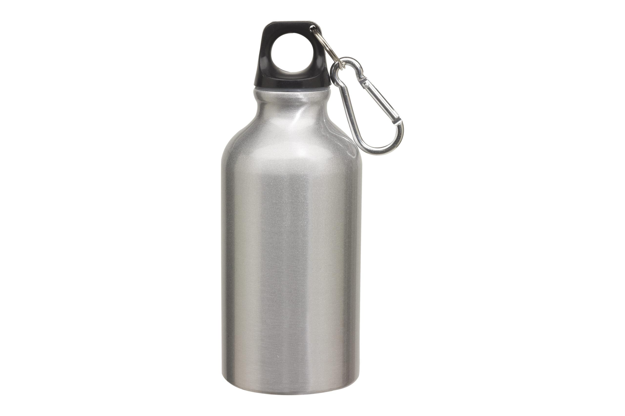 - Botella de aluminio con cierre de plástico y carabina metálica.