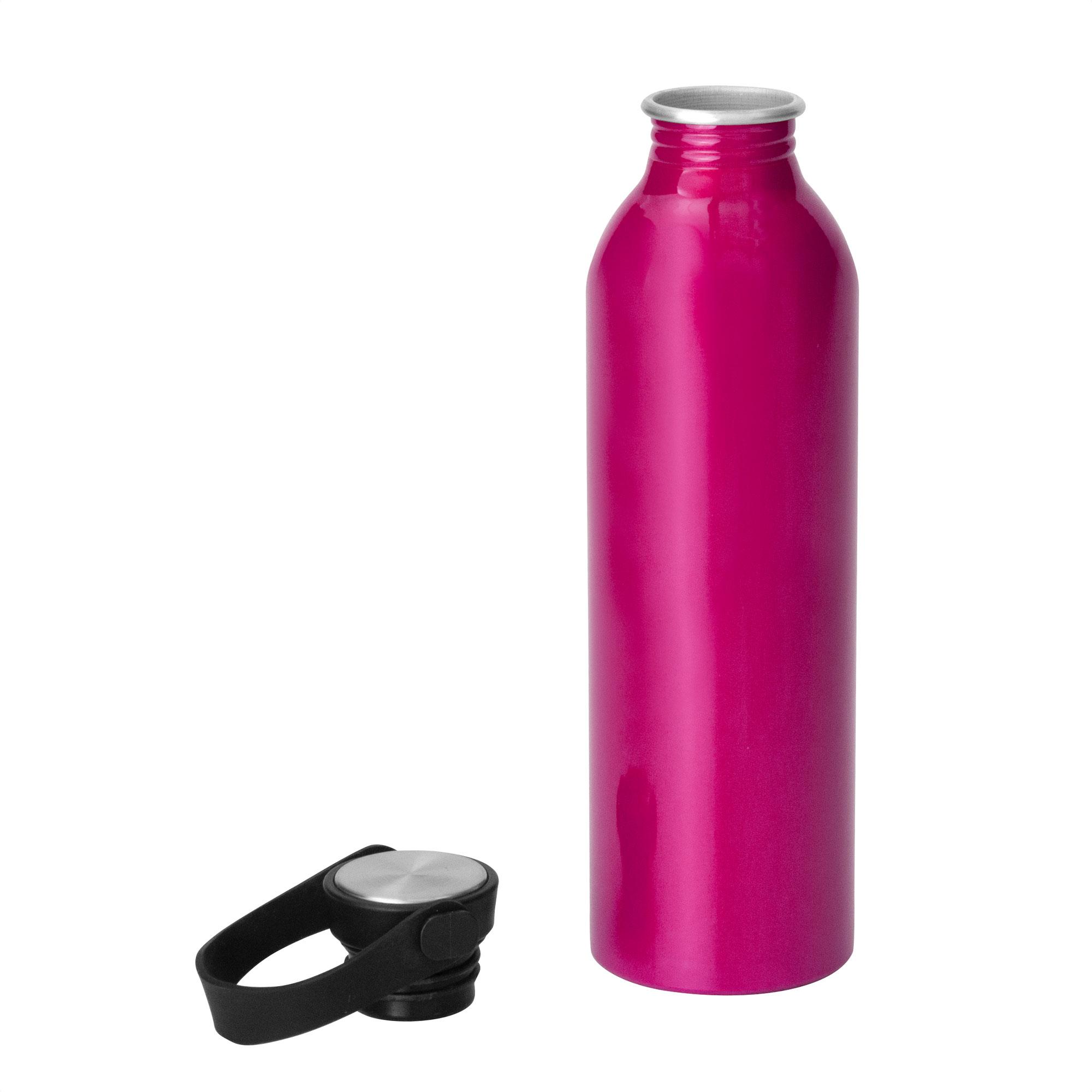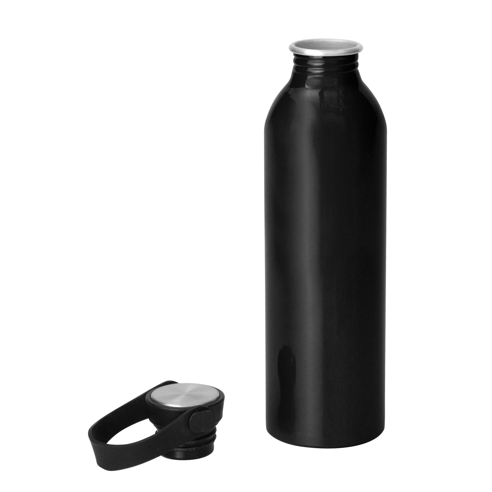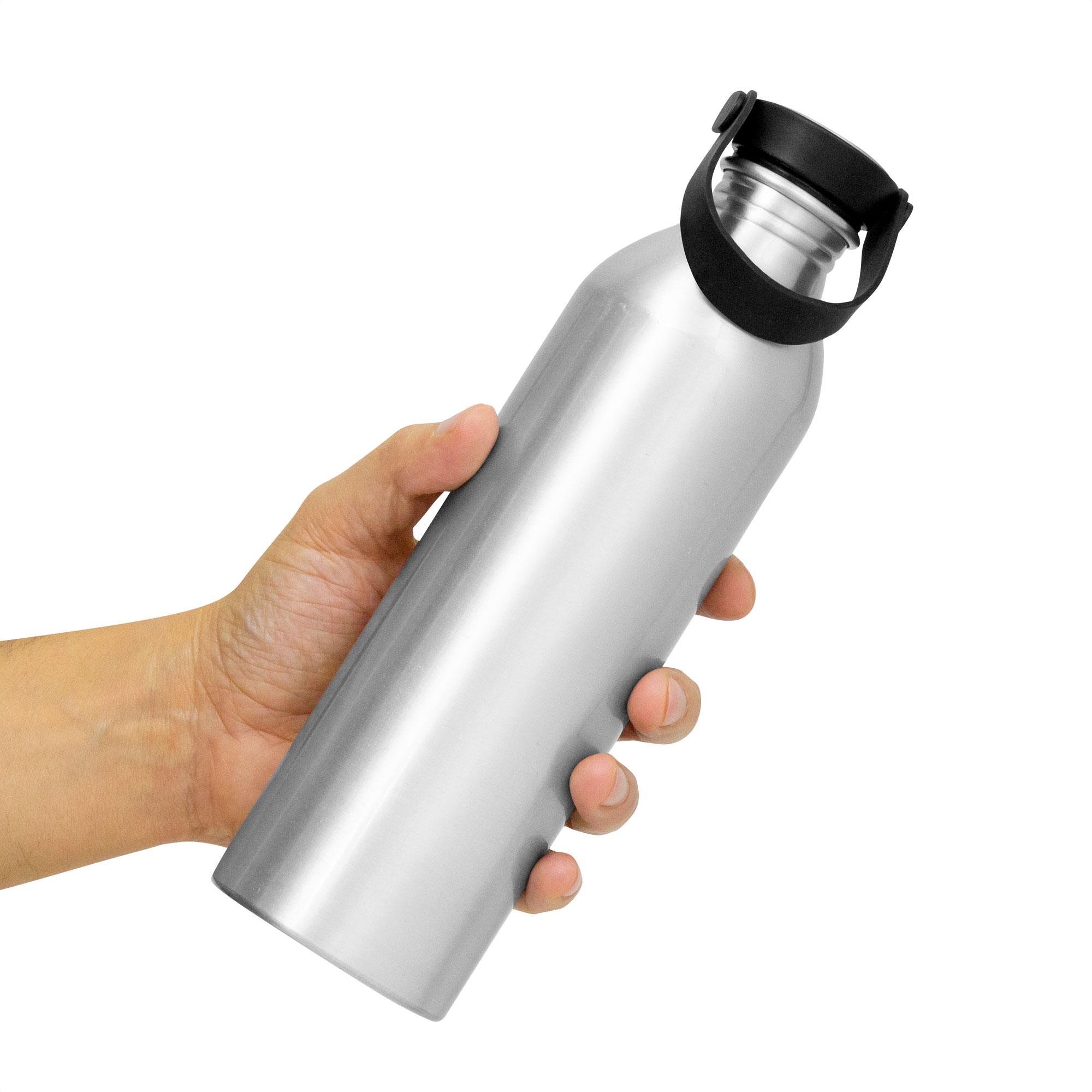 - Botella de aluminio con acabado brillante.