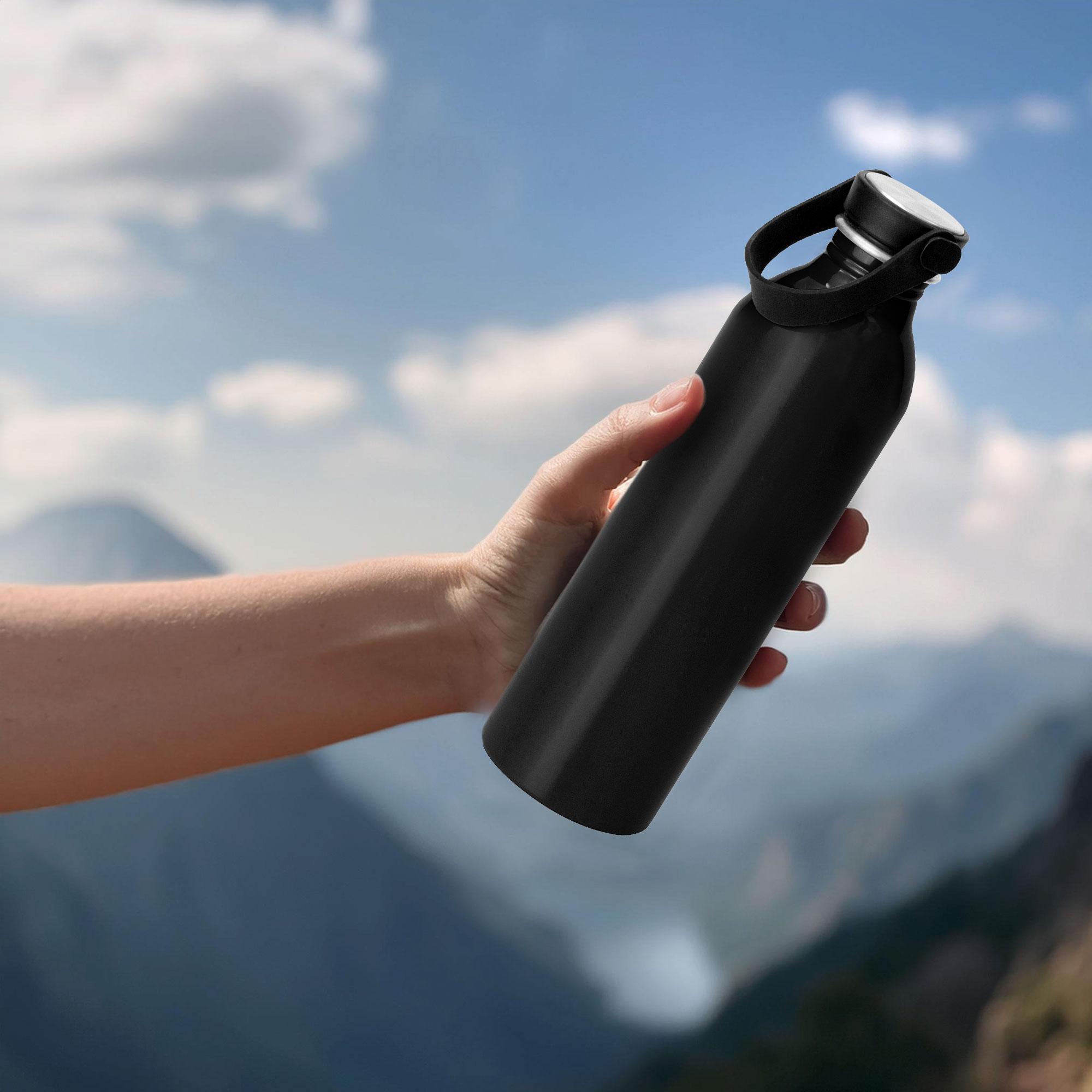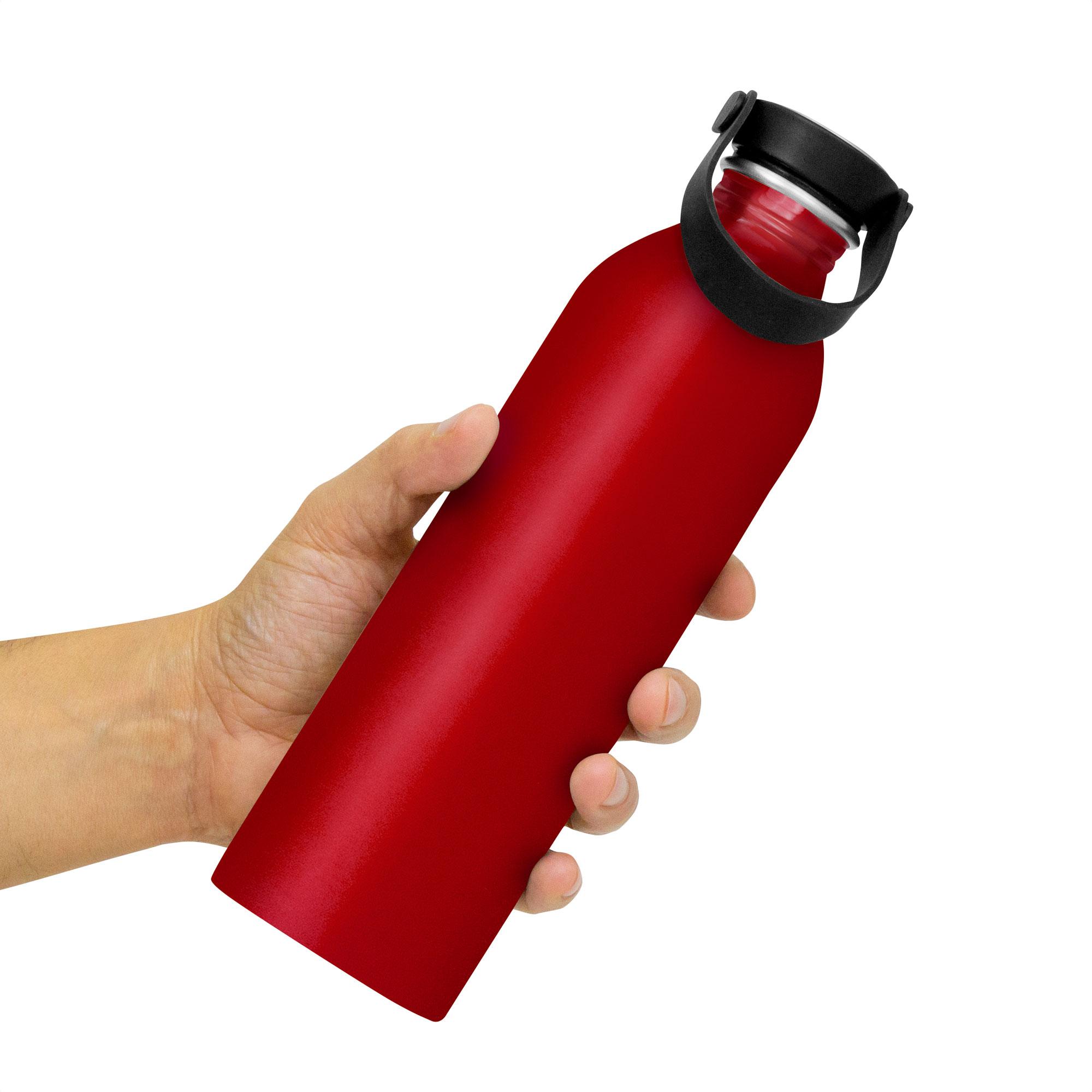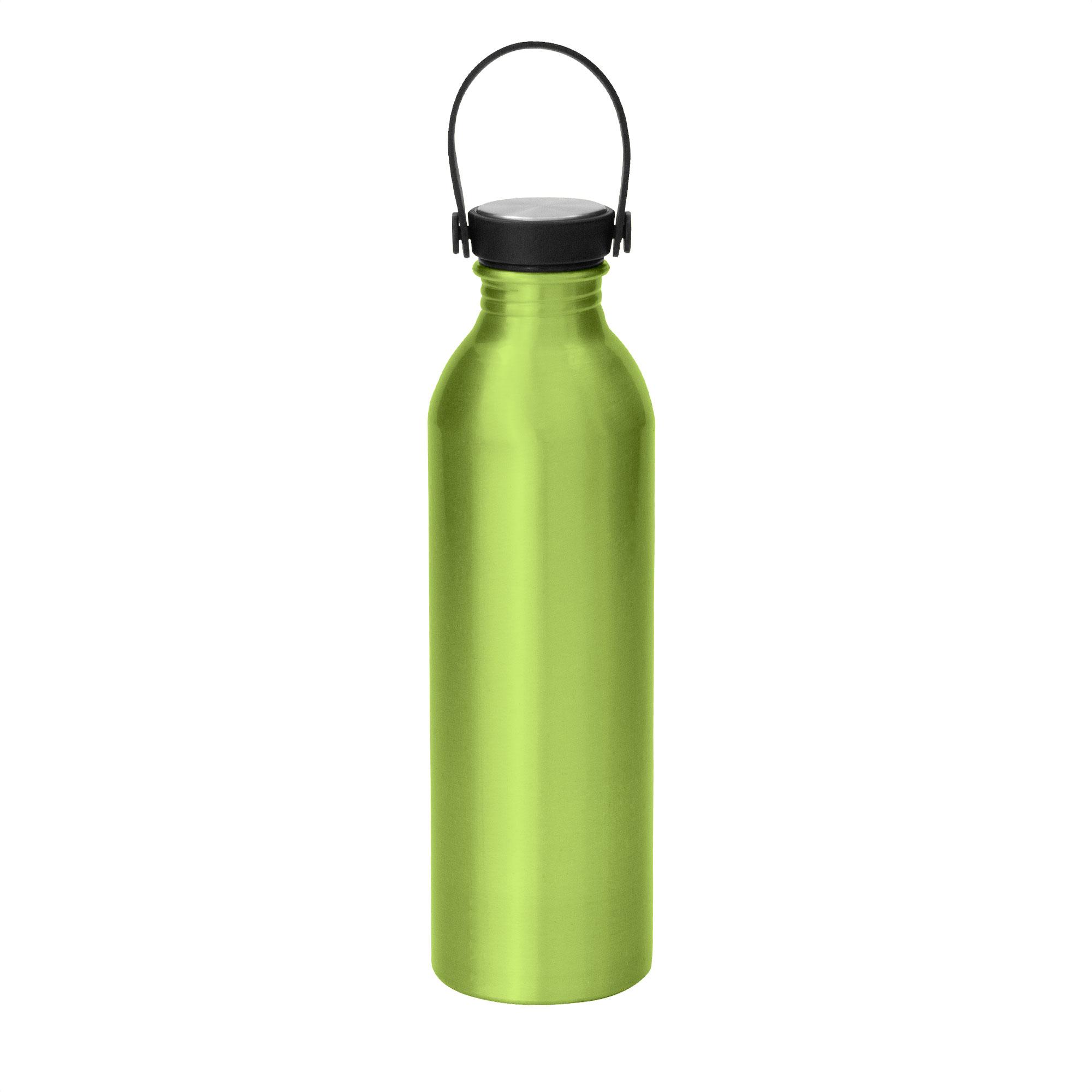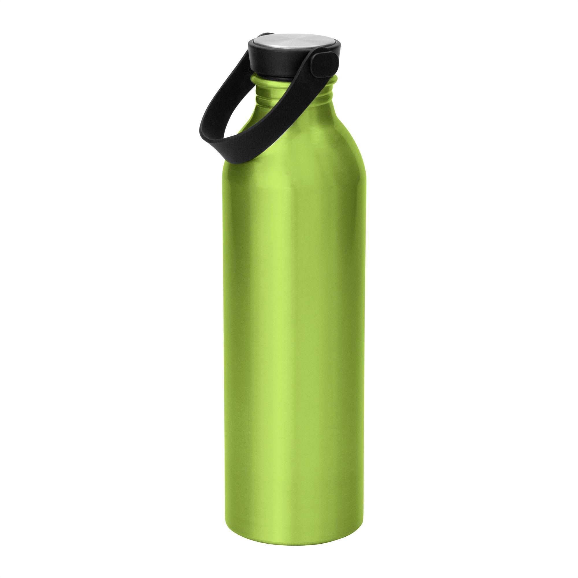 - Botella de aluminio con acabado brillante.