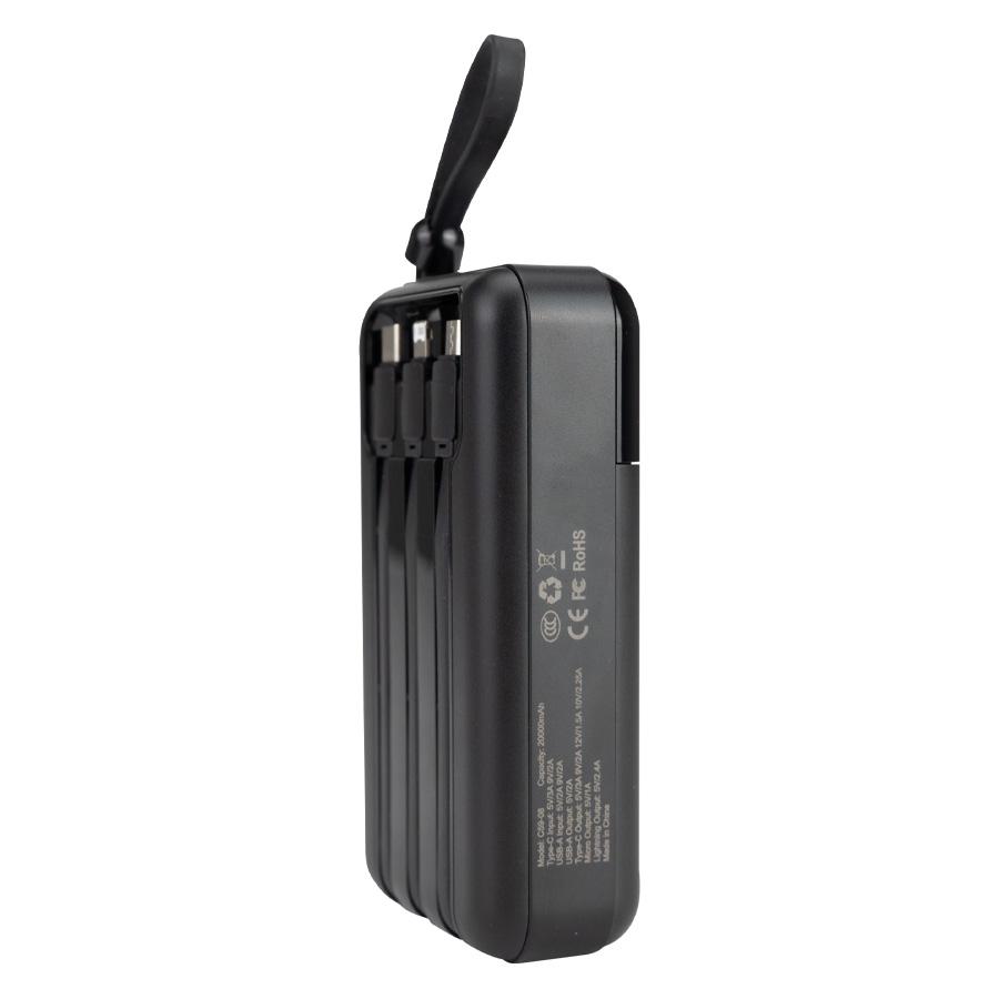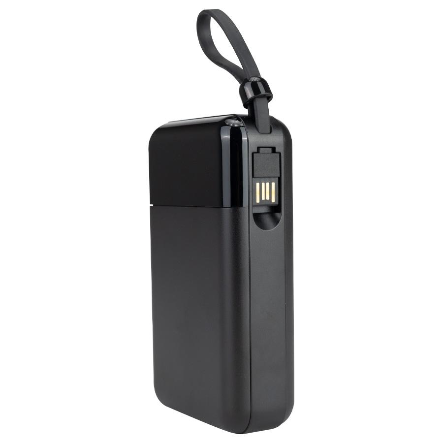 Deluxe cargador Power-Bank USB con pantalla indicador de carga. Amplio espacio para logo. Input: DC 5V 3A / Output: DC 5V 2A. Viene con 3 cables incorporados: micro USB, Tipo C, i-phone. Incluye cable de carga USB / Tipo C. Incluye manual de uso en español e inglés. Presentación en Estuche de cartón forrado color negro. Producto con Certificaciones.