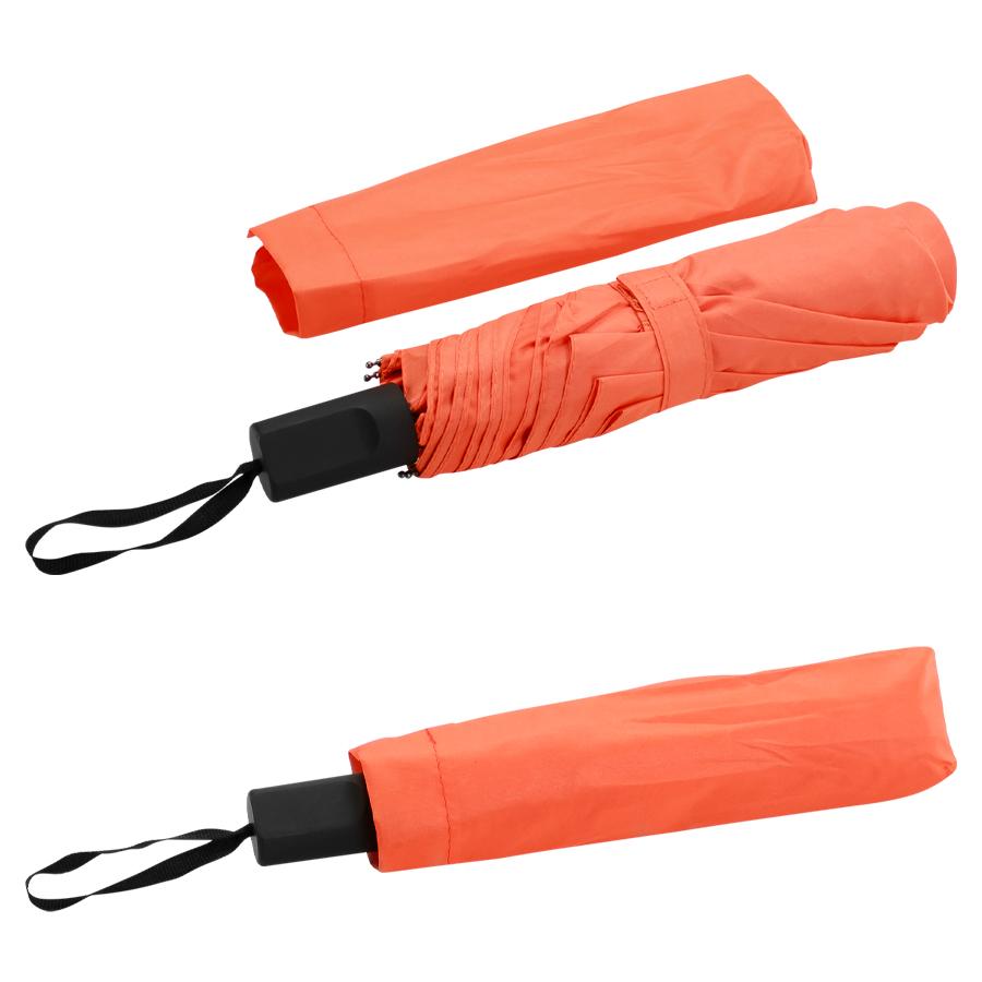 Deluxe Paraguas corto con 8 cascos de tela 190T PONGEE. Cuerpo telescópico de 3 secciones y varas reforzadas de Fibra de Vidrio color negro, sistema de apertura manual. Mango recto de EVA negro con cinta negra para colgar. Incluye funda al tono de 190T PONGEE.