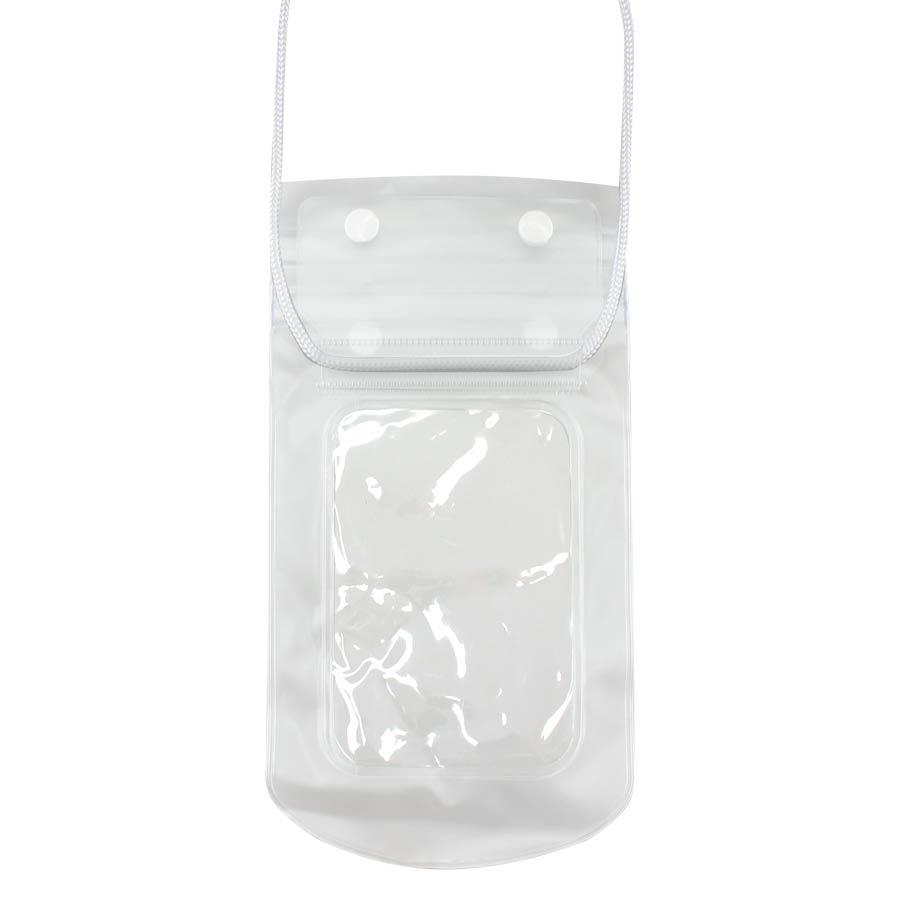 Guardatodo de PVC clear con colgador ajustable de cordón blanco. Incluye doble sistema de cierre: zipper doble y broches.