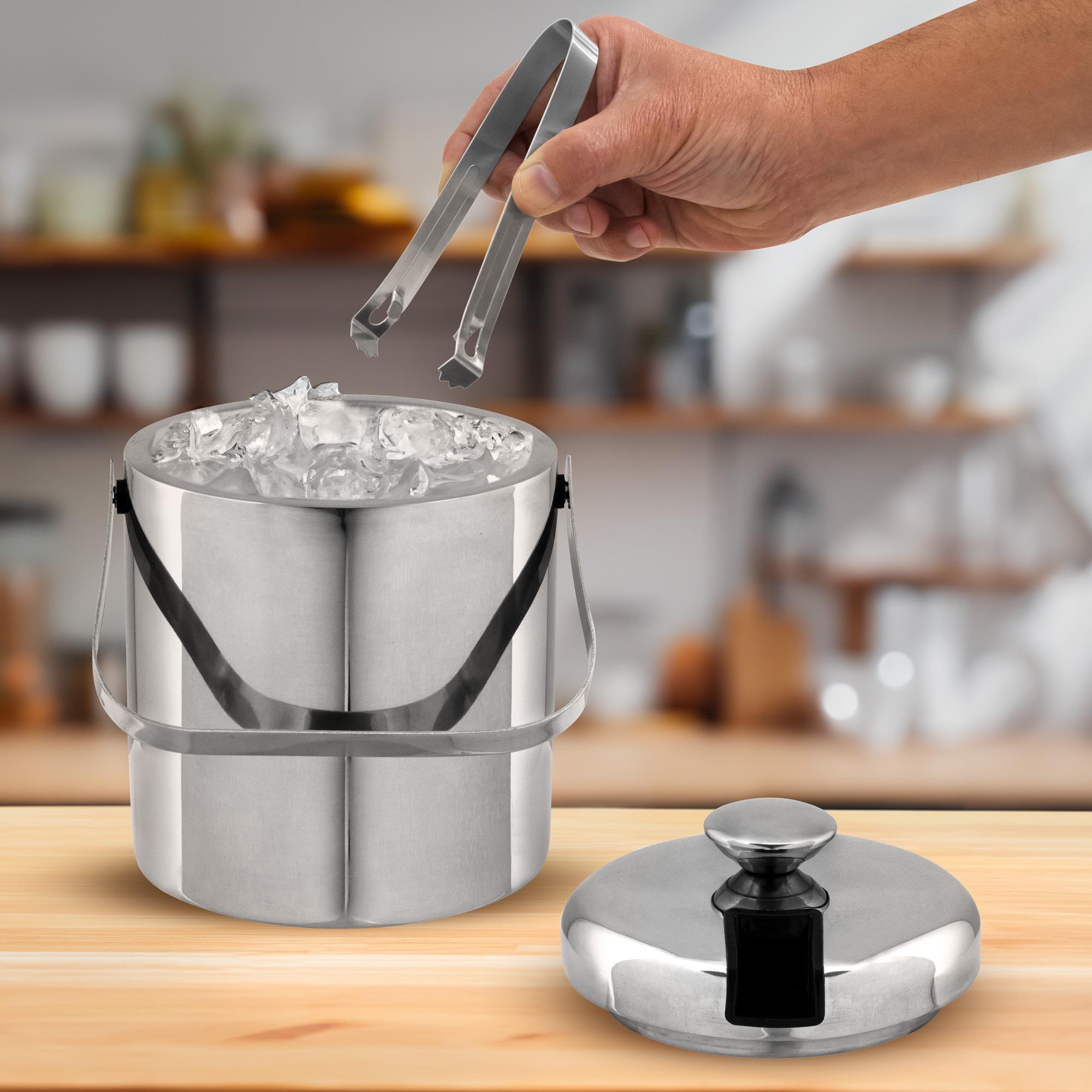 - Pinza para hielo de acero inoxidable, encastrable en la misma tapa.