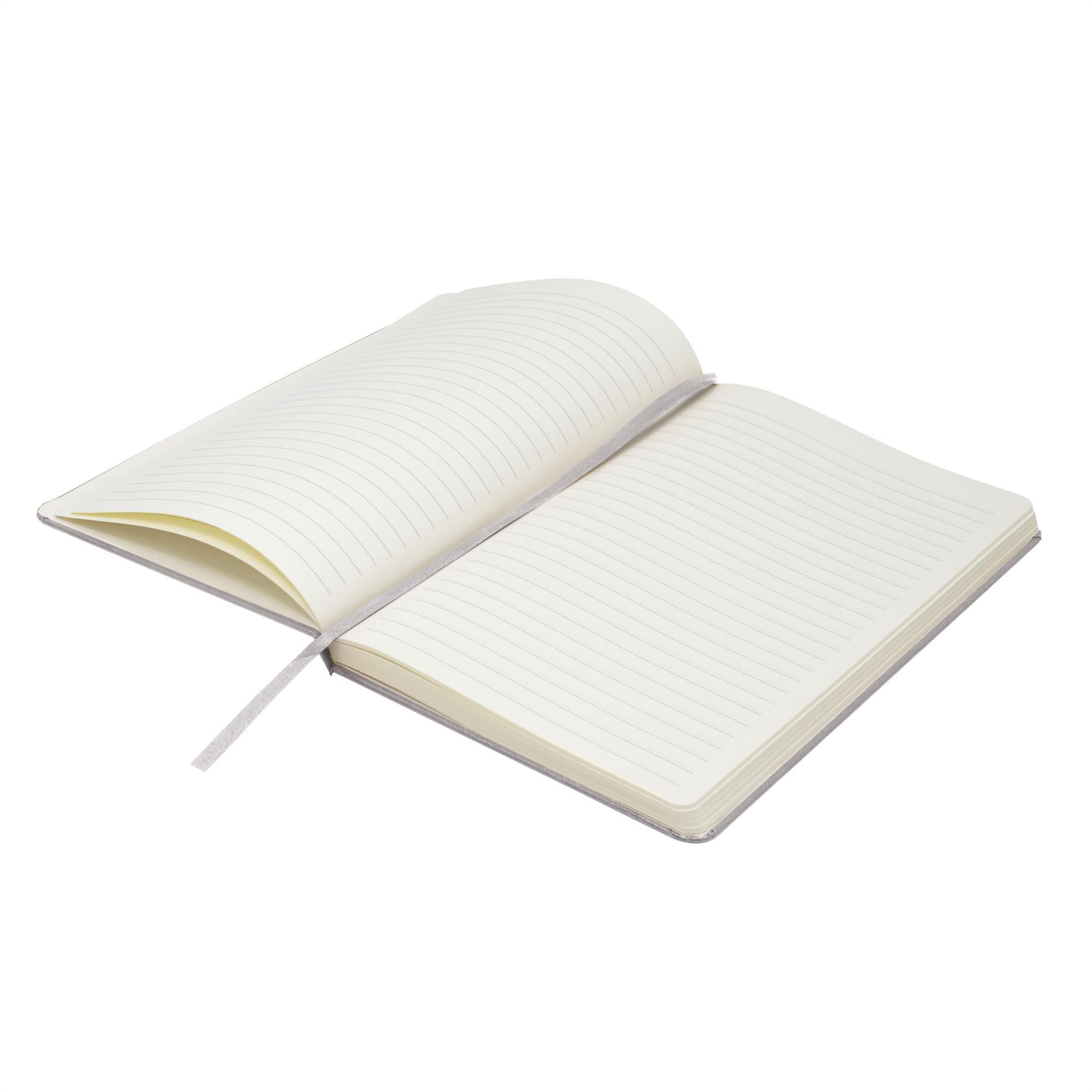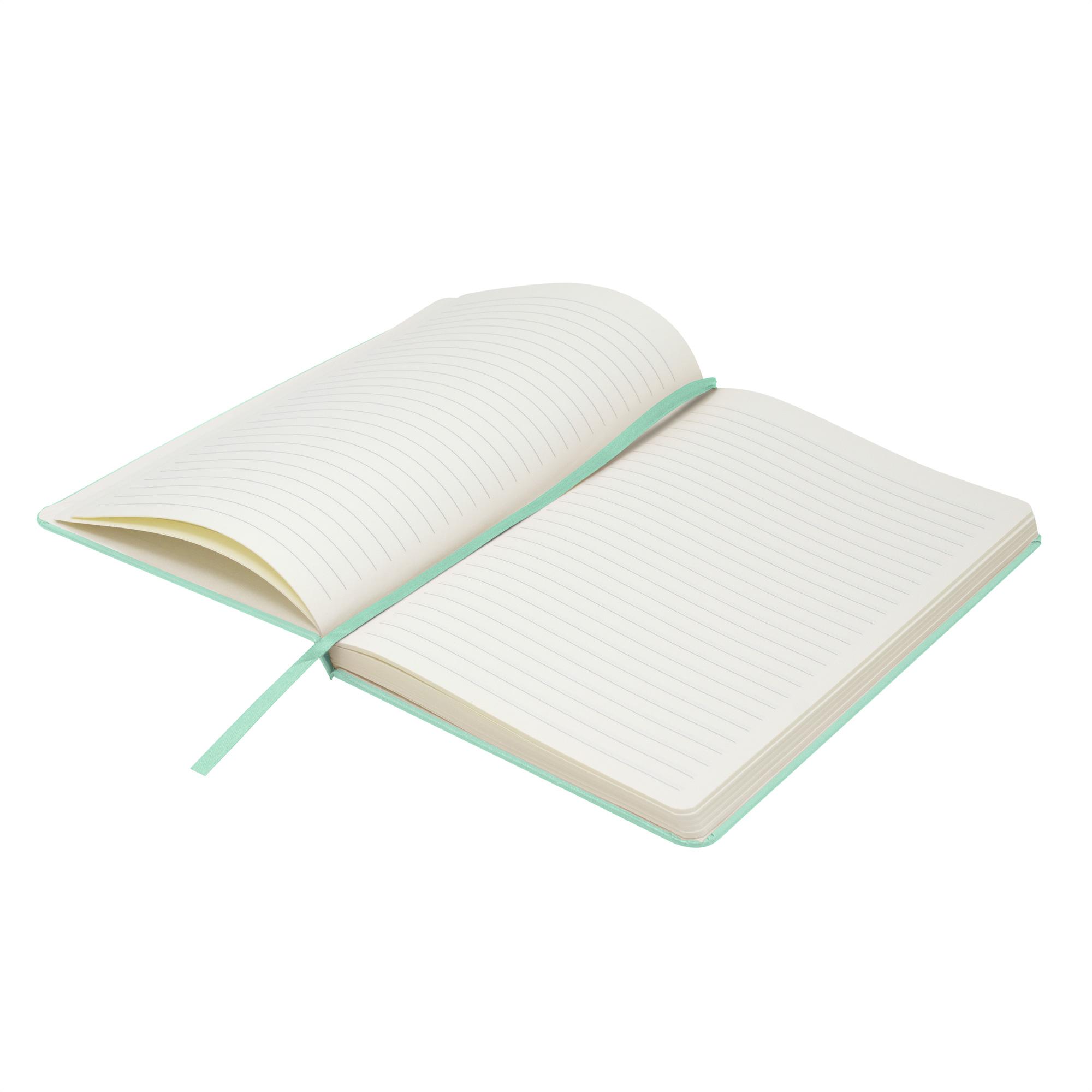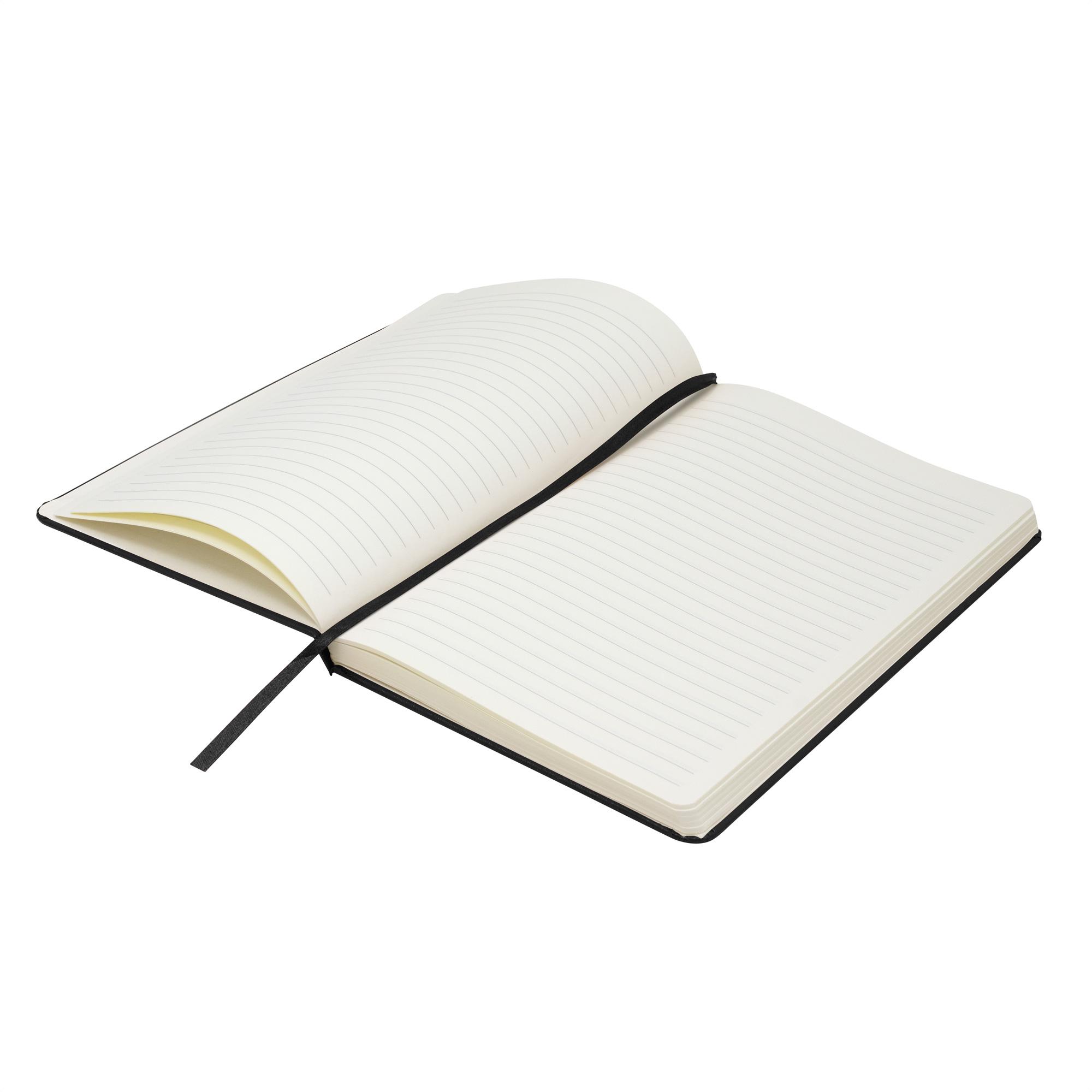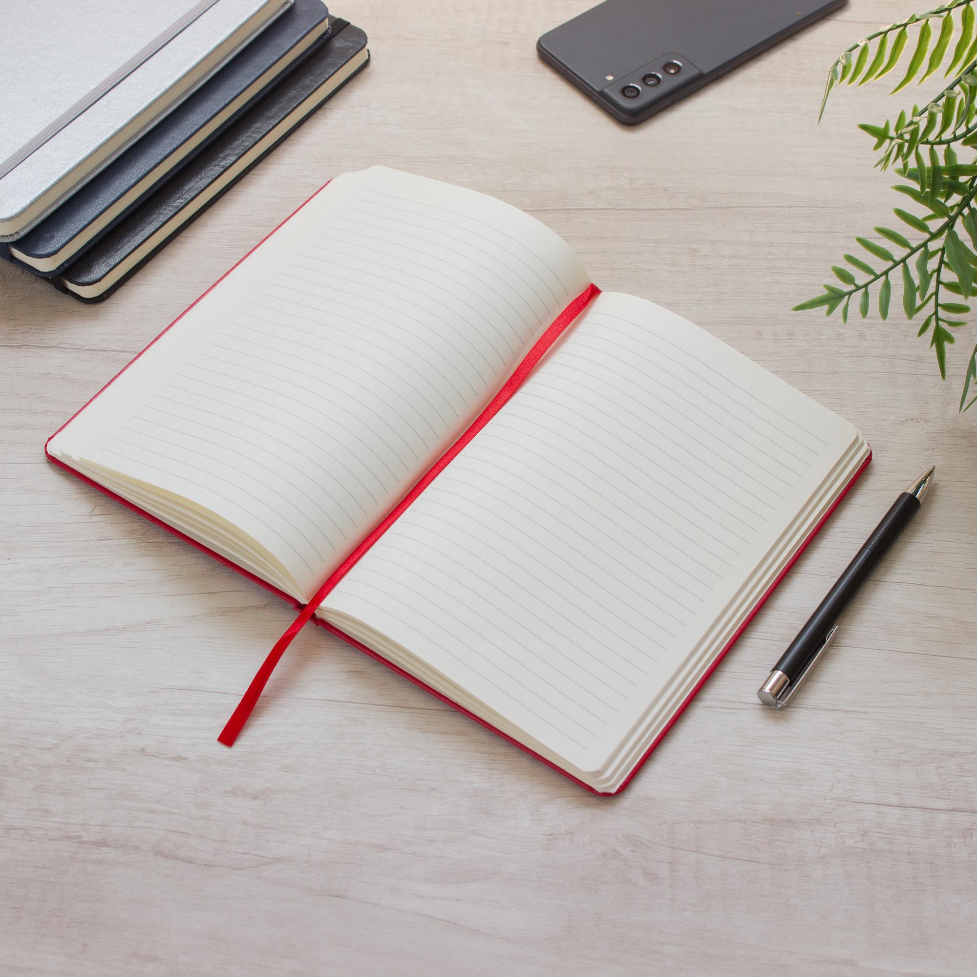 - Interior de 80 hojas rayadas en papel obra crema de 70g.