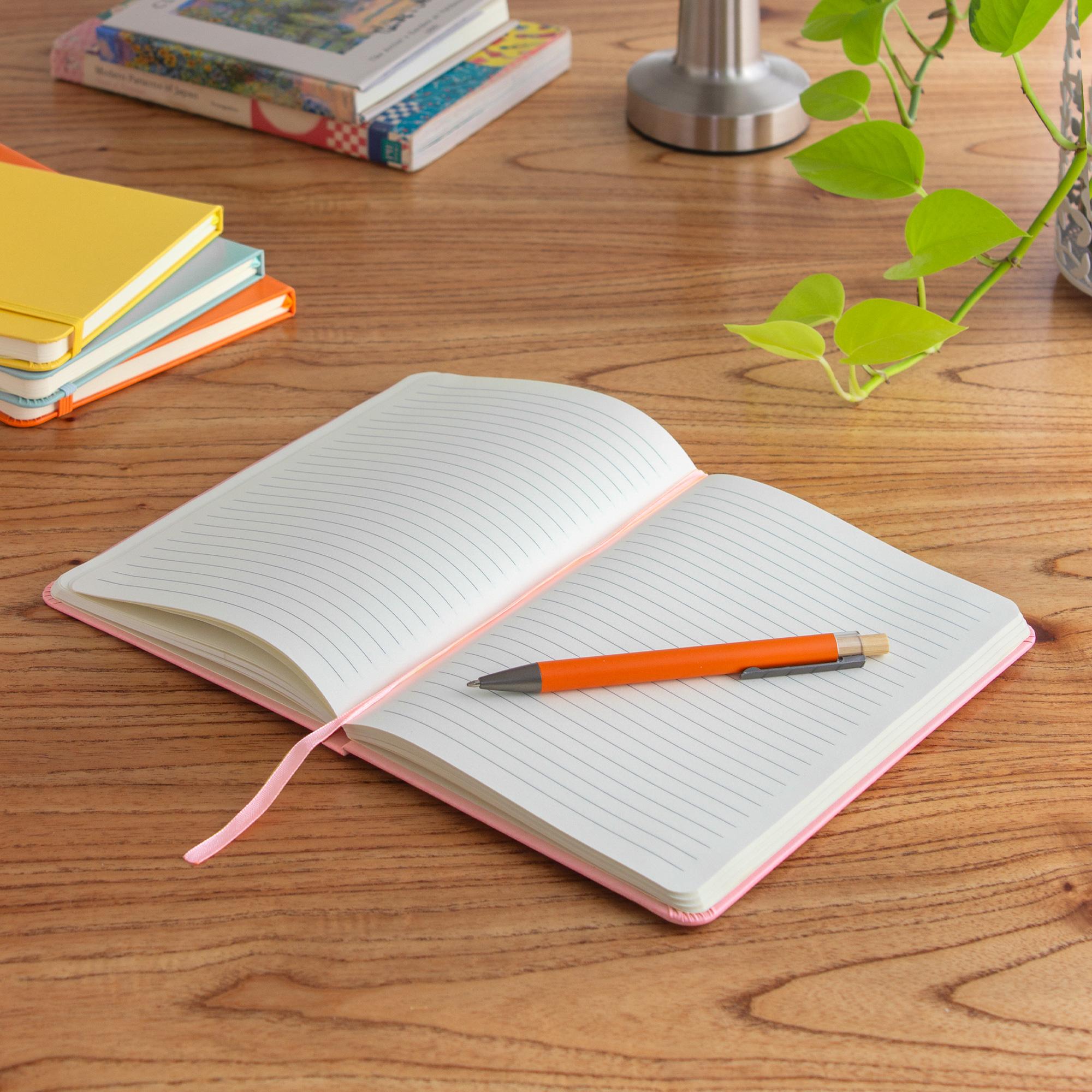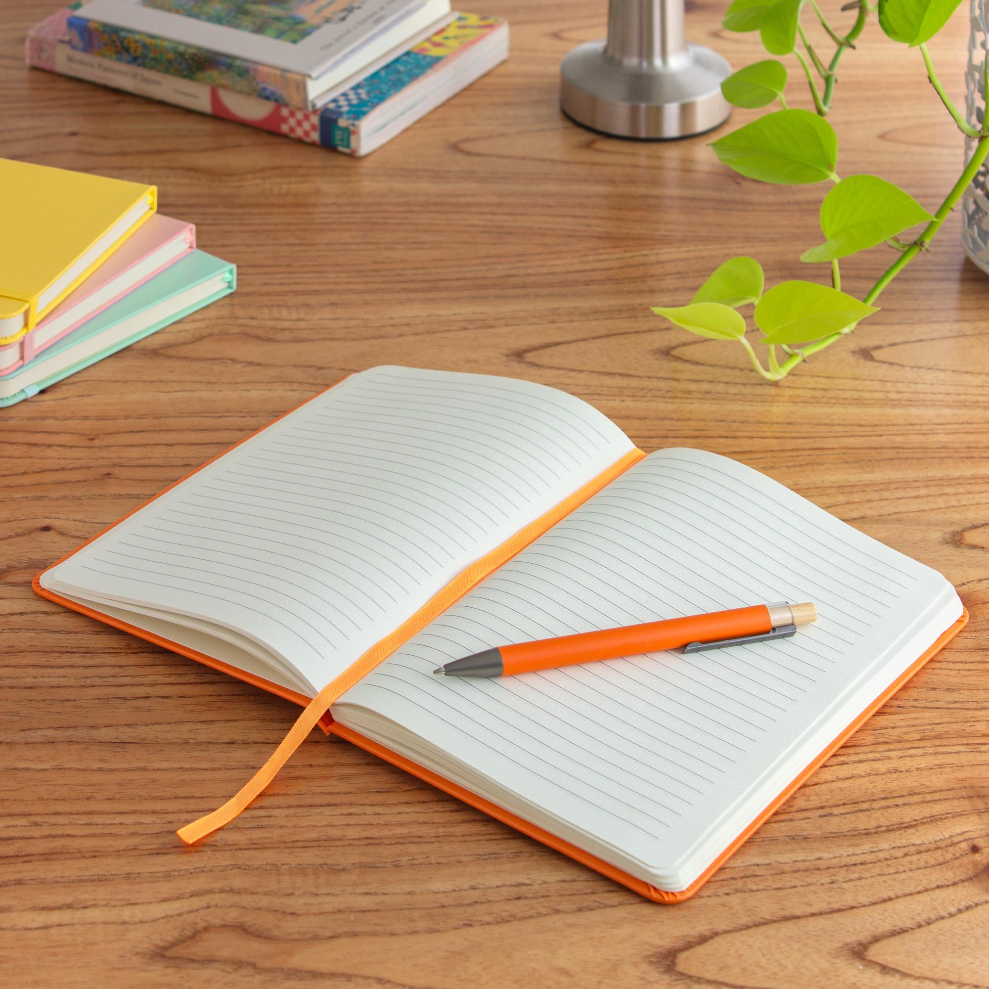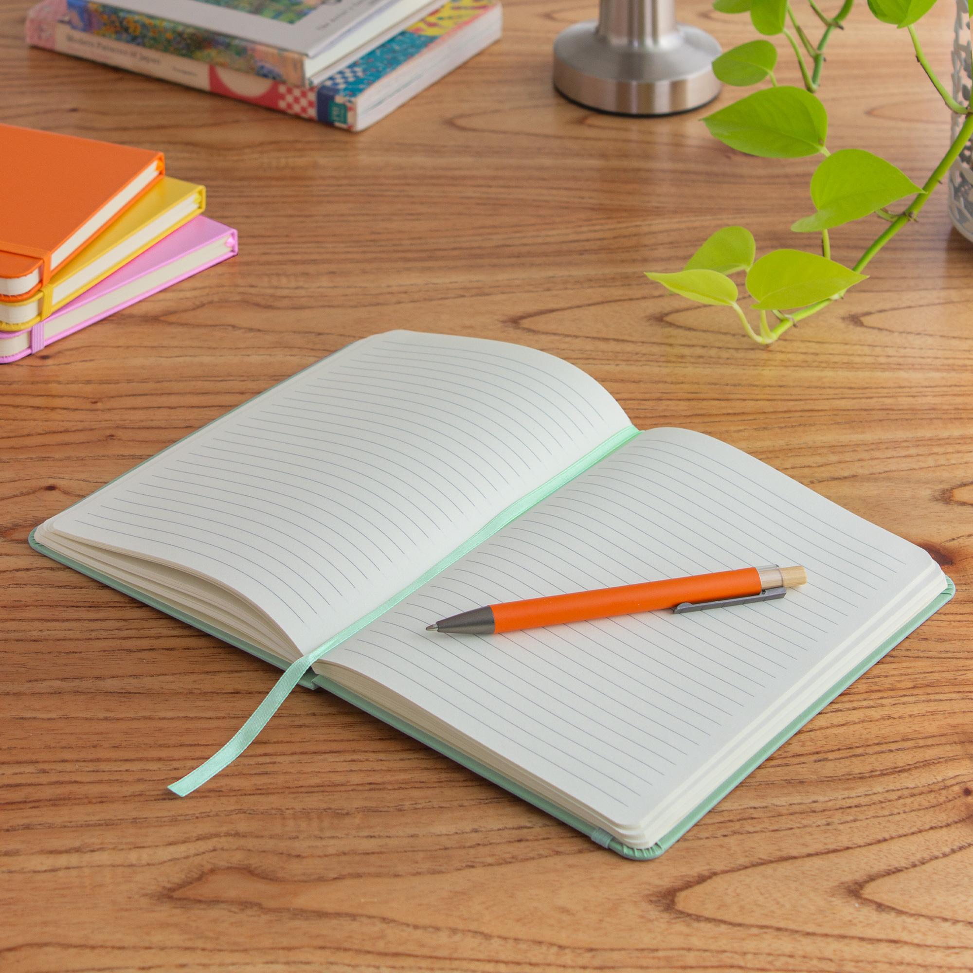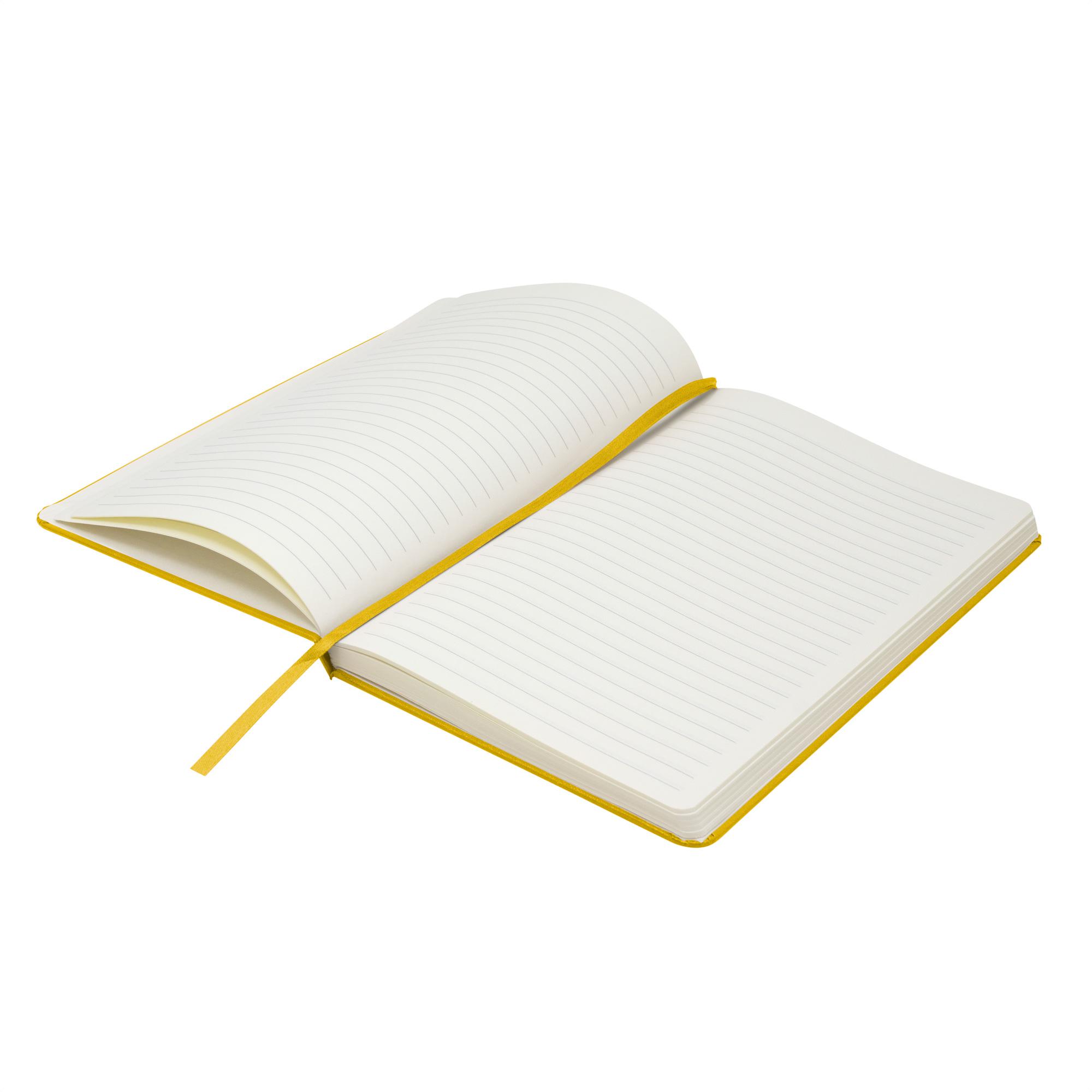 - Interior de 80 hojas rayadas en papel obra crema de 70g.