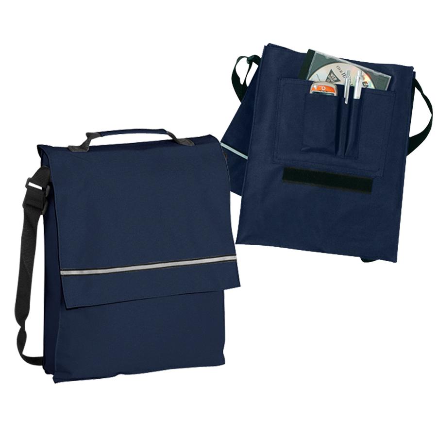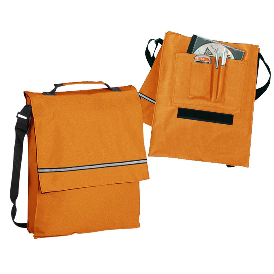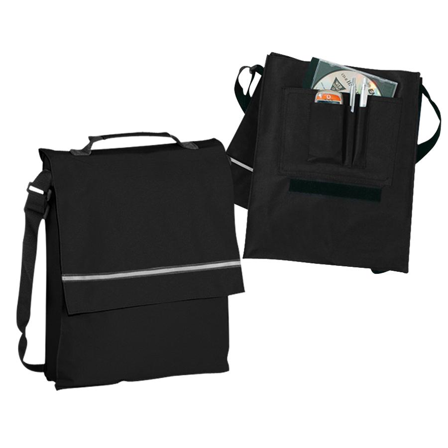 Maletín Portadocumentos de tela raquelada Polyester 600D modelo "Milan", con solapa y bolsillo interior multi-accesorios. Incluye banda reflectante en la solapa.