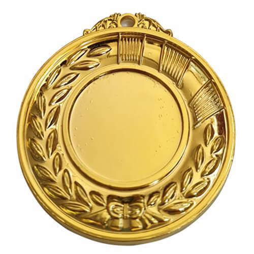 Medalla 50 mm hoja de laurel Modelo FR01 ideal para premiaciones deportivas, escolares, institucionales y eventos corporativos.