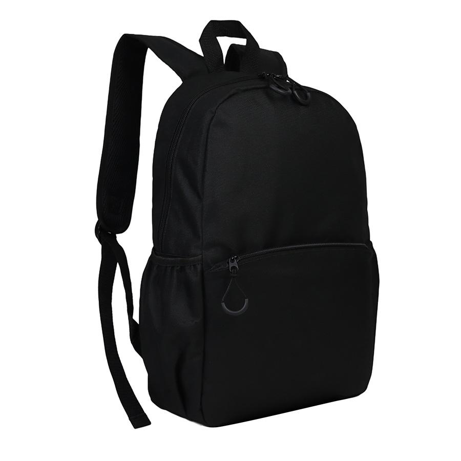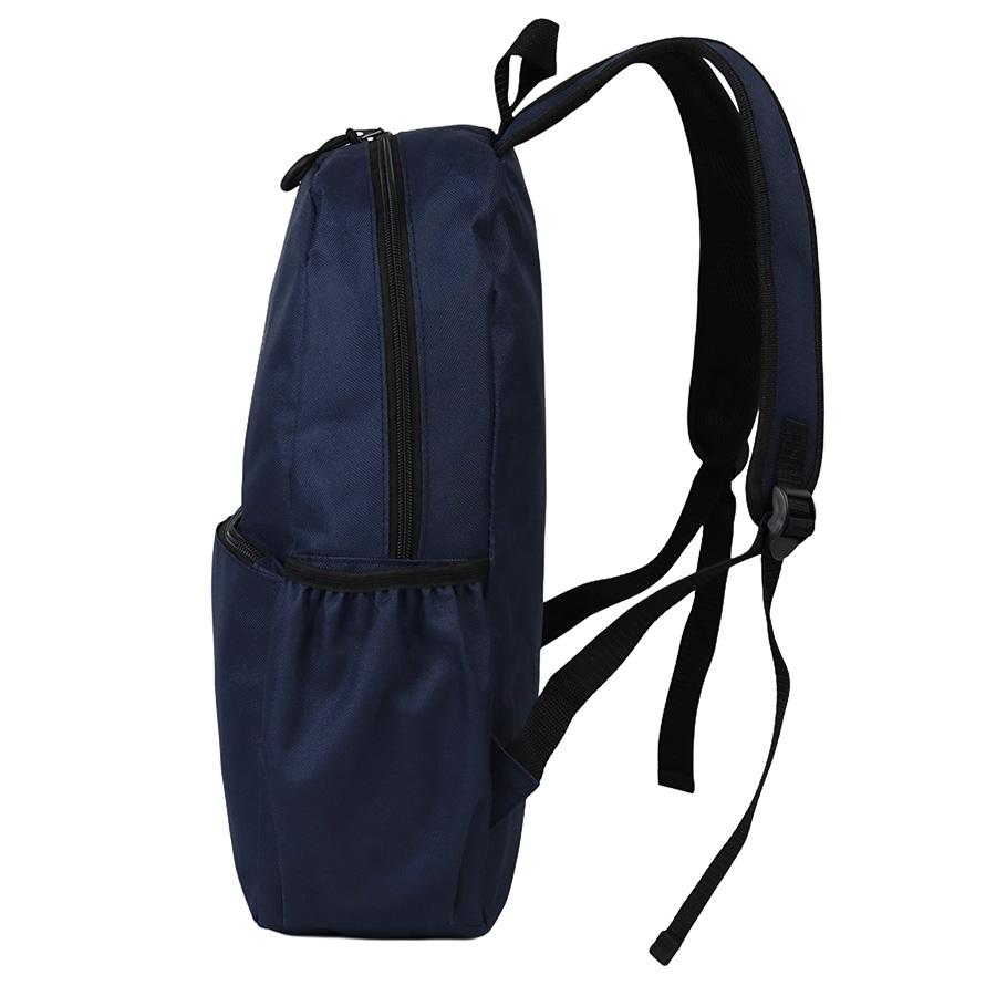 Mochila de poliéster 600D/PVC, modelo "Clasica". Incluye compartimento principal, bolsillo delantero y 2 compartimentos laterales para guardar botellas. Con forro interior de nylon negro. Correas ajustables.