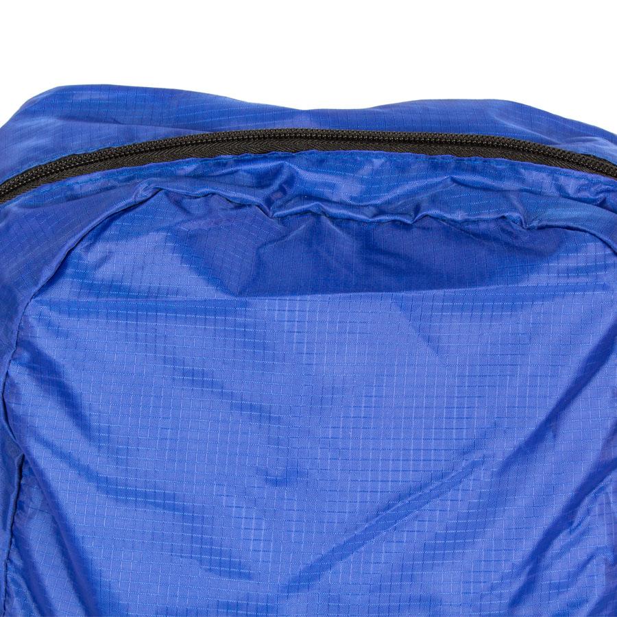 Mochila retráctil de poliéster Ripstop 210D. Se retrae y se guarda en bolsillo delantero, quedando de un tamaño rectangular compacto de 20 x 19 cm.