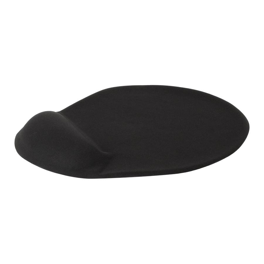 Mouse-pad Ergonómico de PU Neopreno negro, con Apoya-Muñeca de Gel. Importante uso terapéutico para prevenir lesiones en muñeca y articulaciones, por uso prolongado del mouse. Viene dentro de blister plástico translúcido, y contiene cartulina con texto informativo.