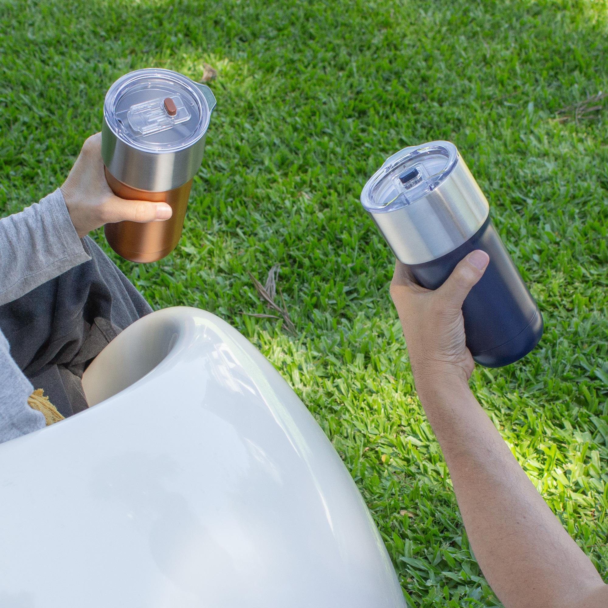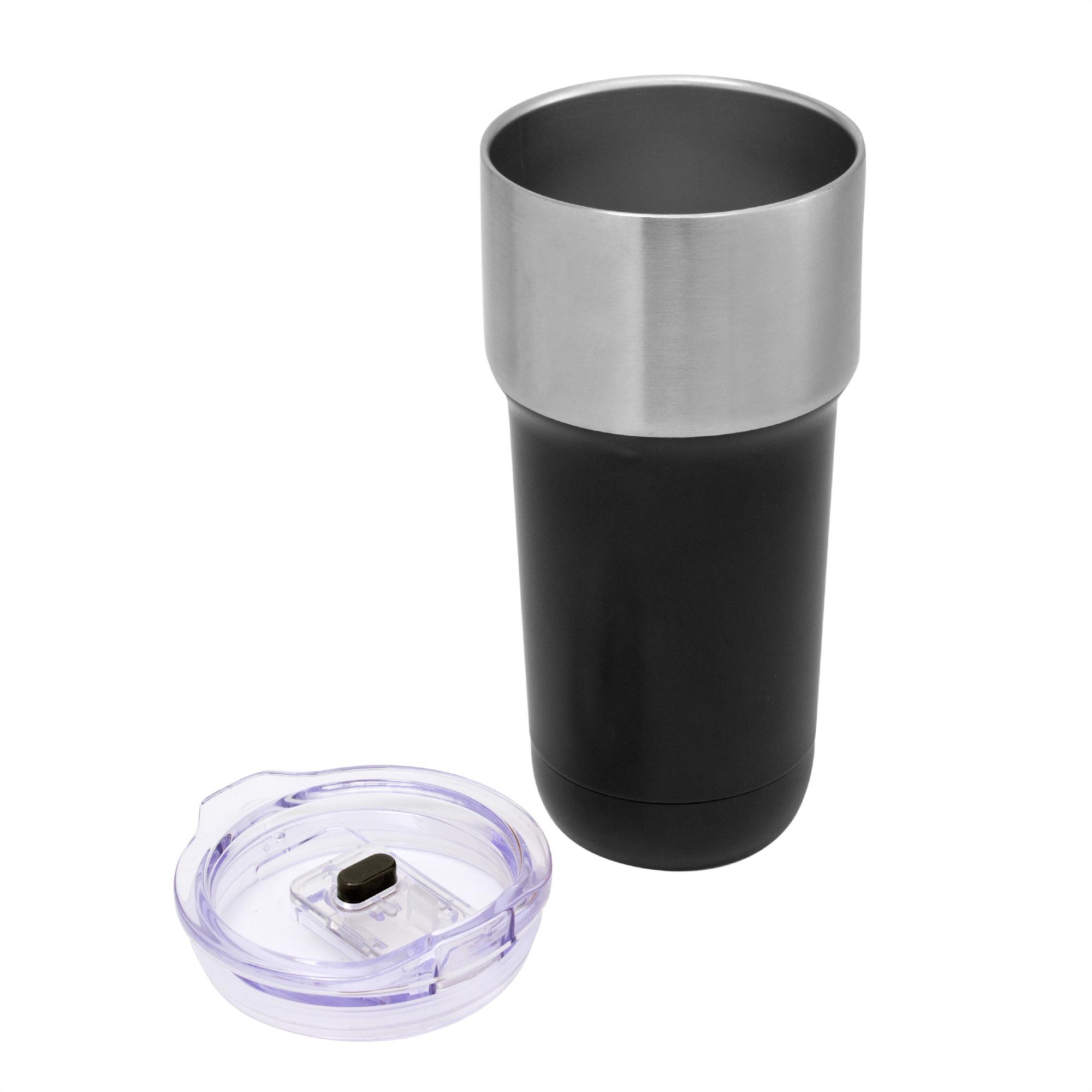 • Tapa de poliestireno con anillo de silicona y detalles en color en juego con el cuerpo.