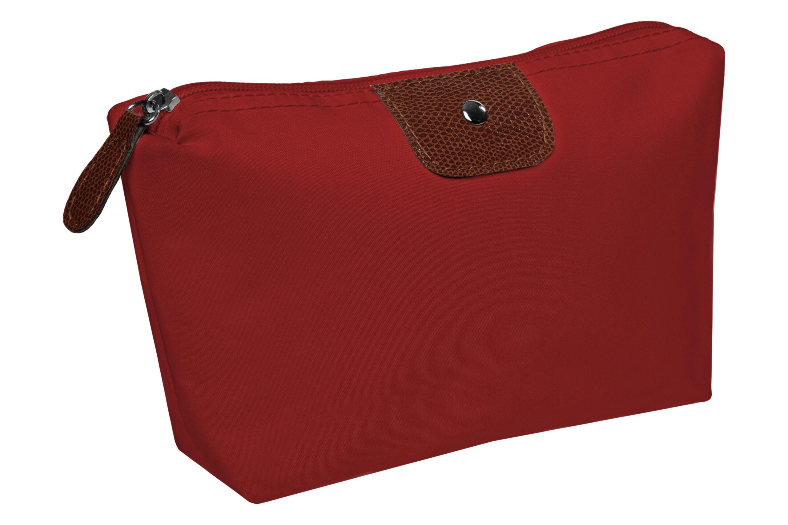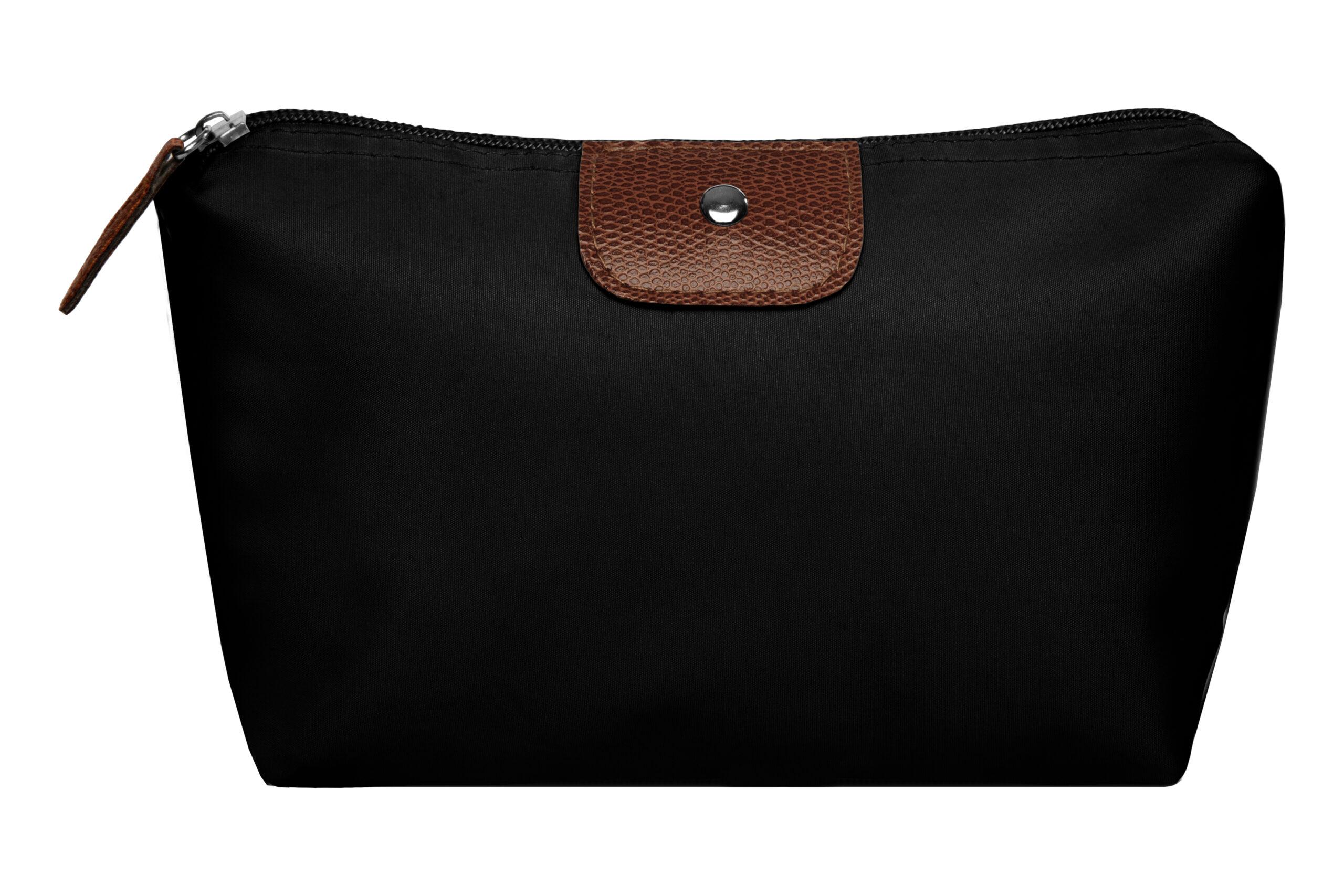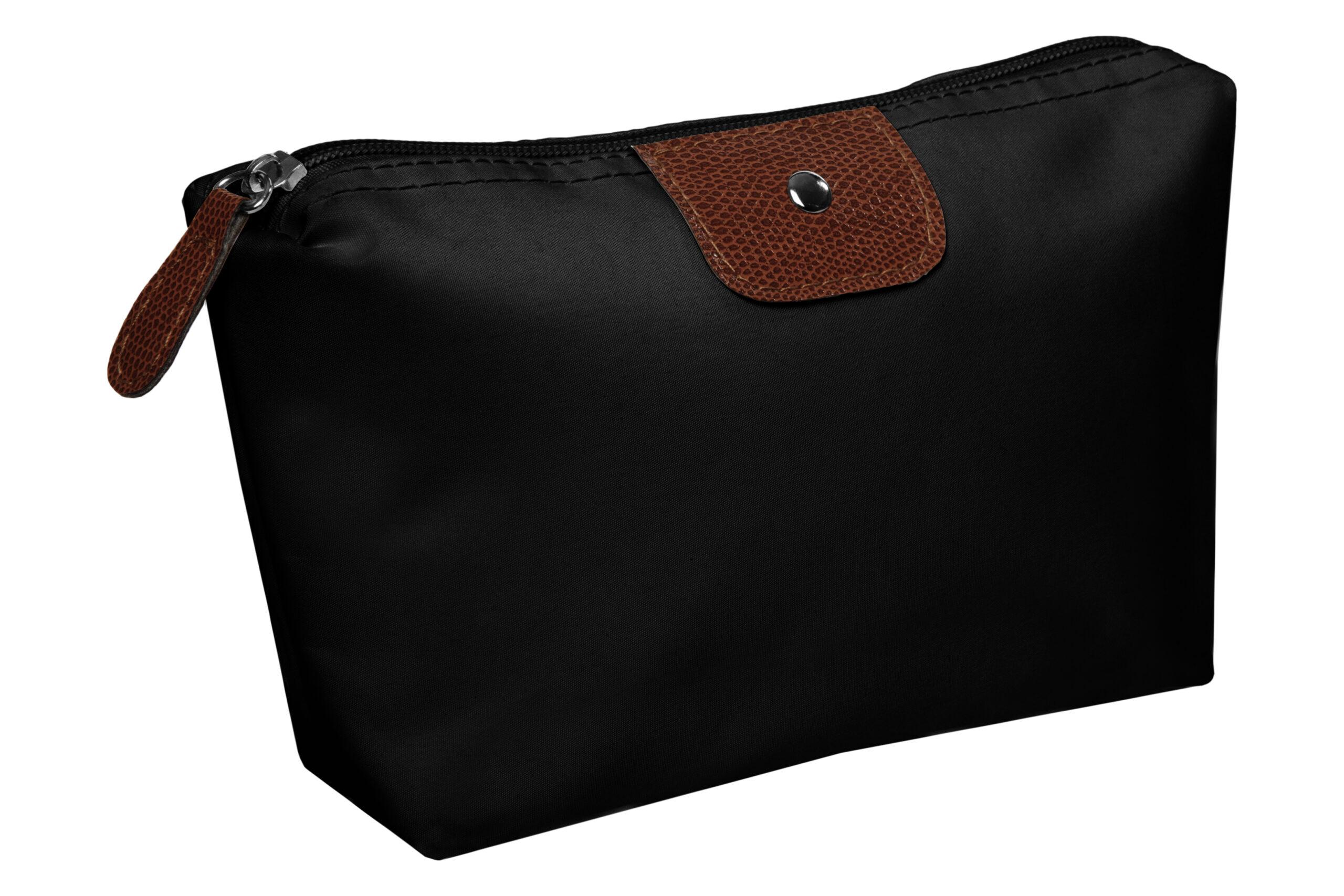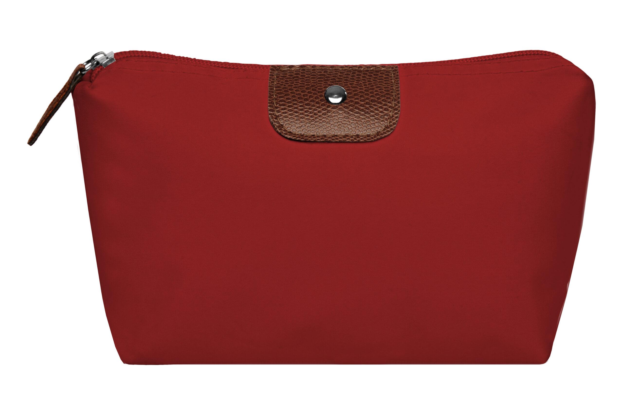 • Necessaire con detalles en símil cuero y un botón metálico en el frente.