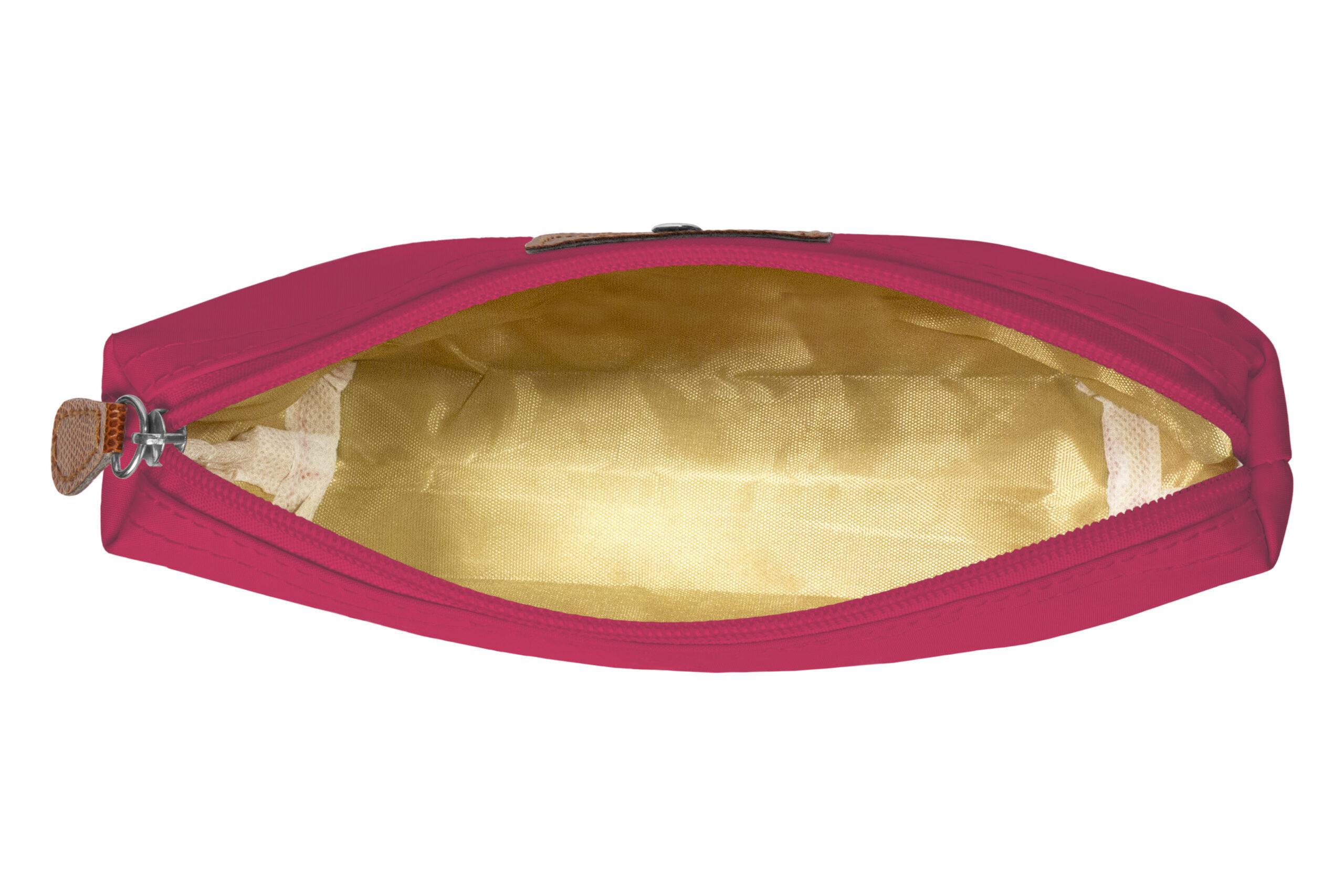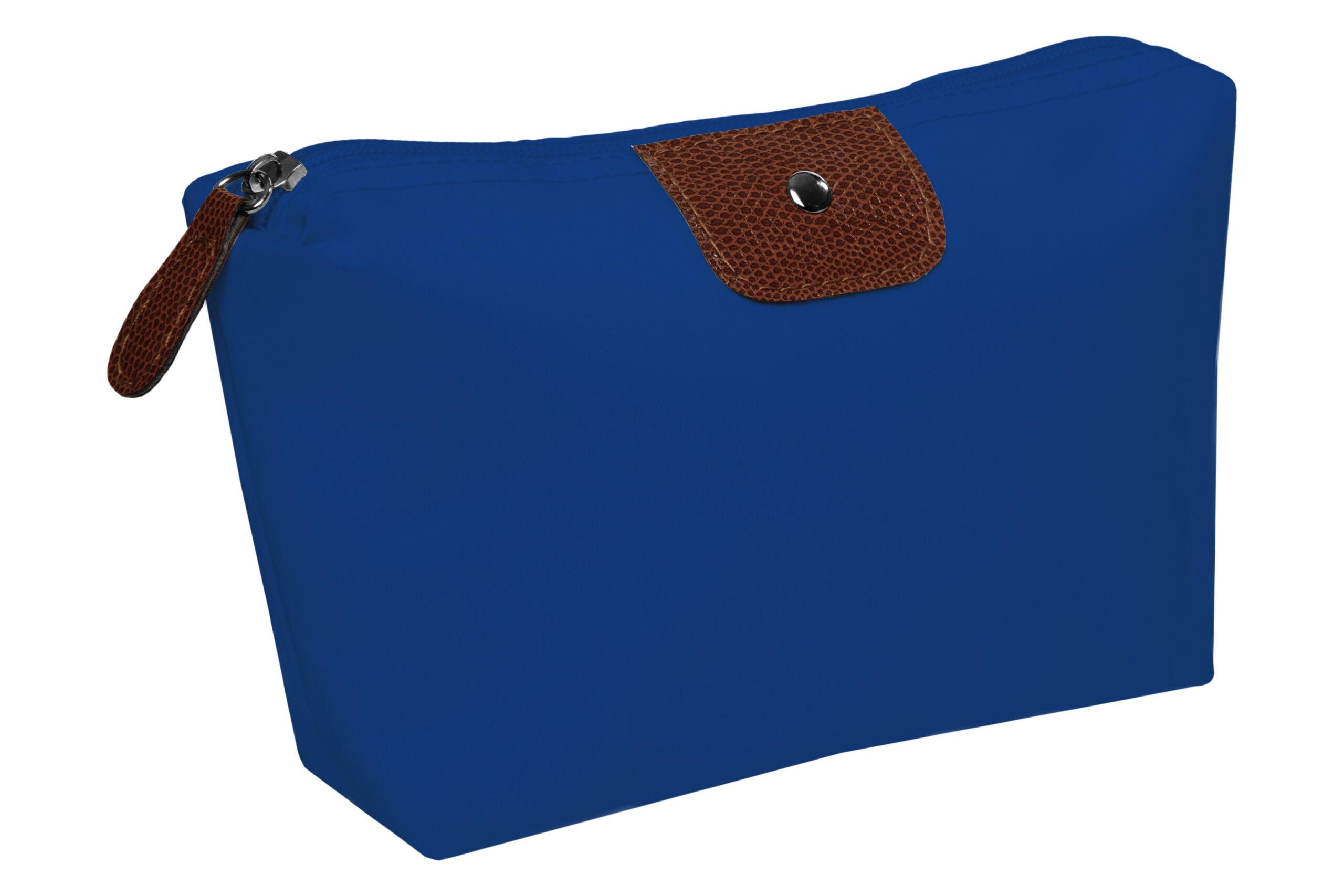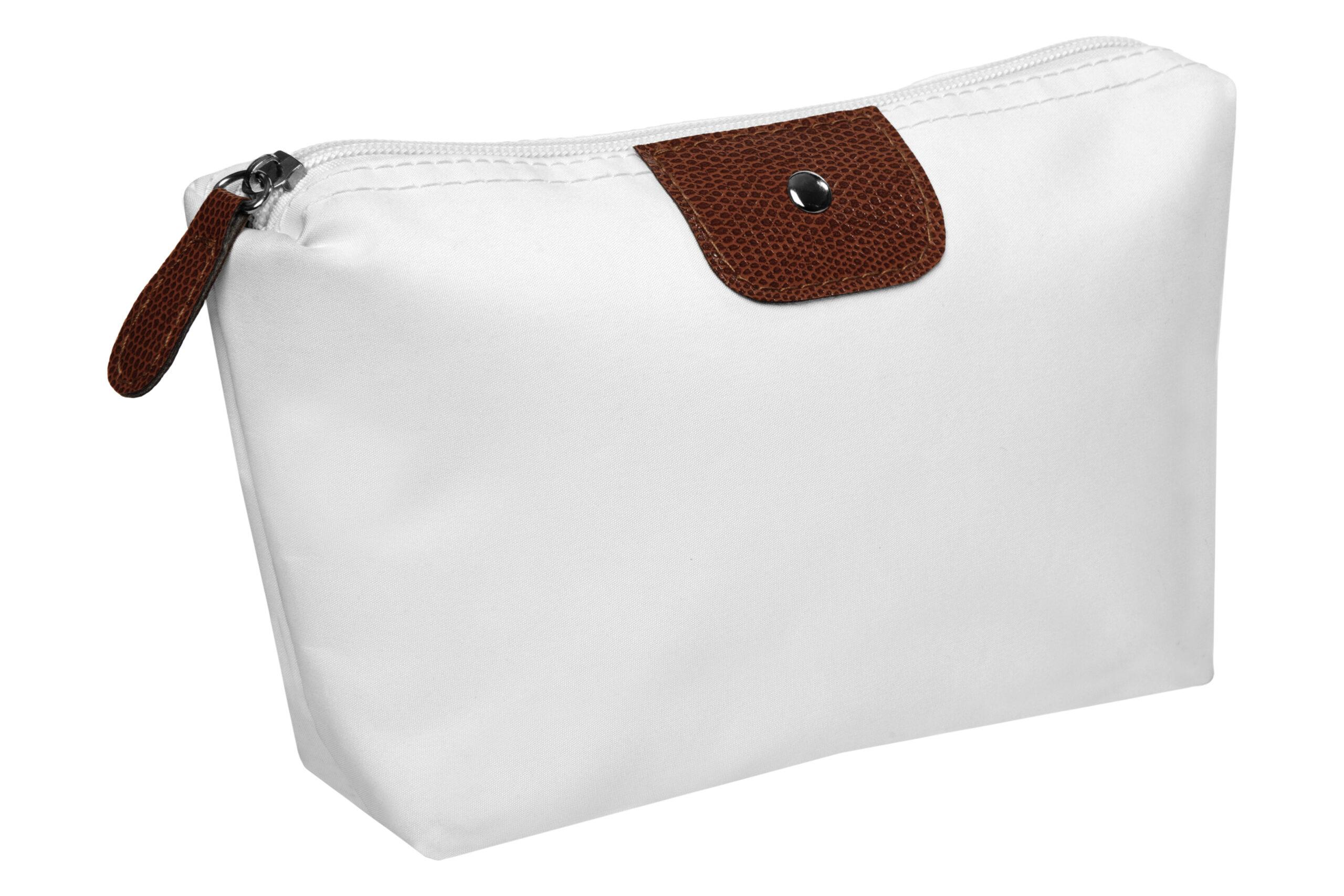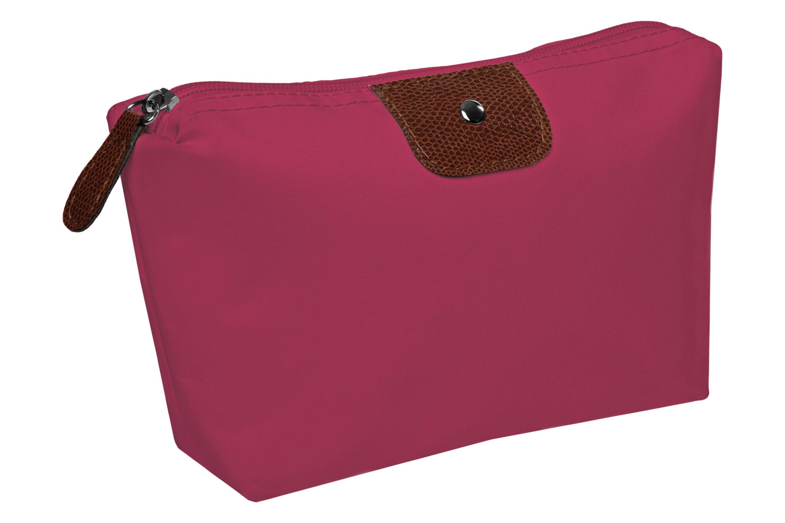 • Necessaire con detalles en símil cuero y un botón metálico en el frente.