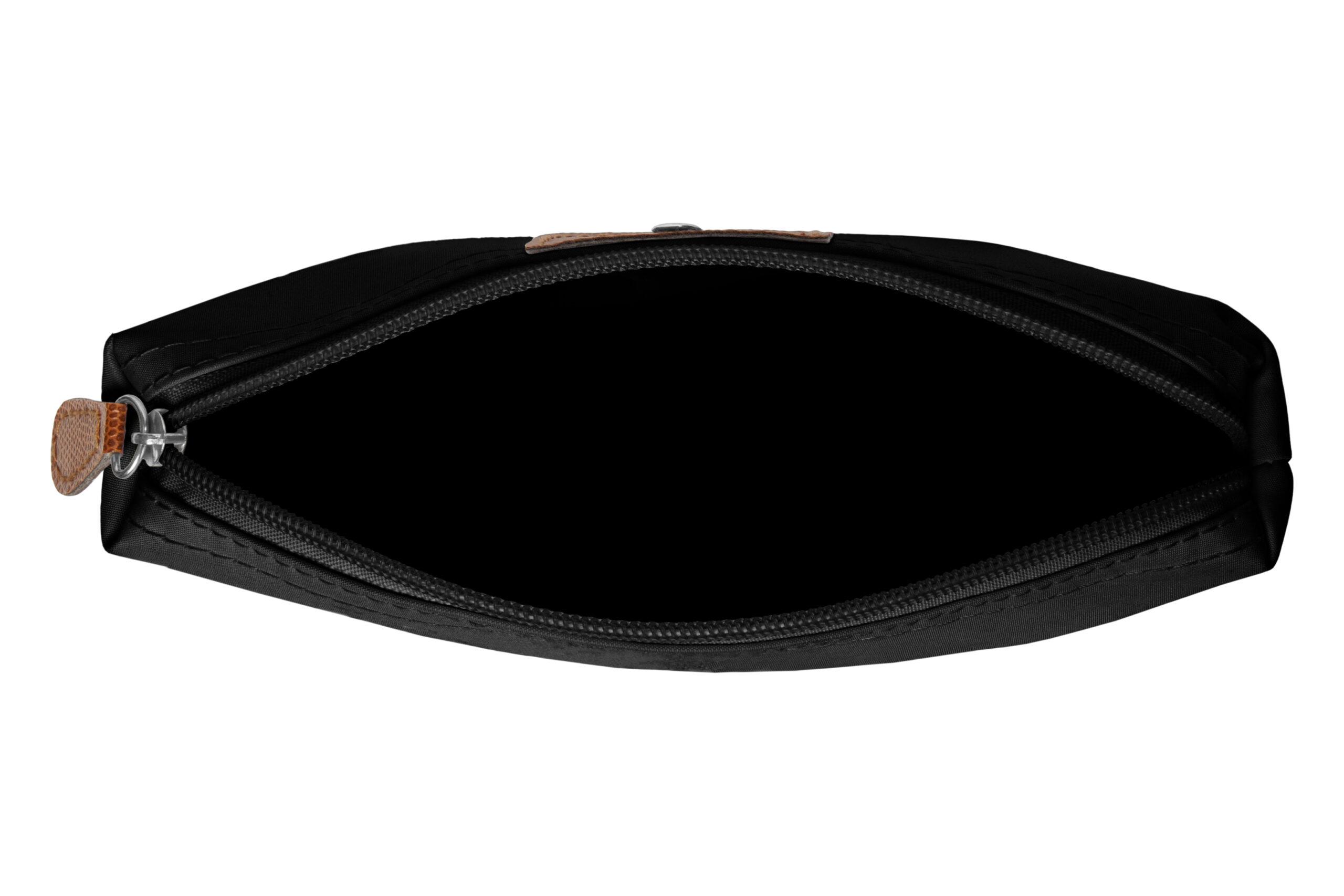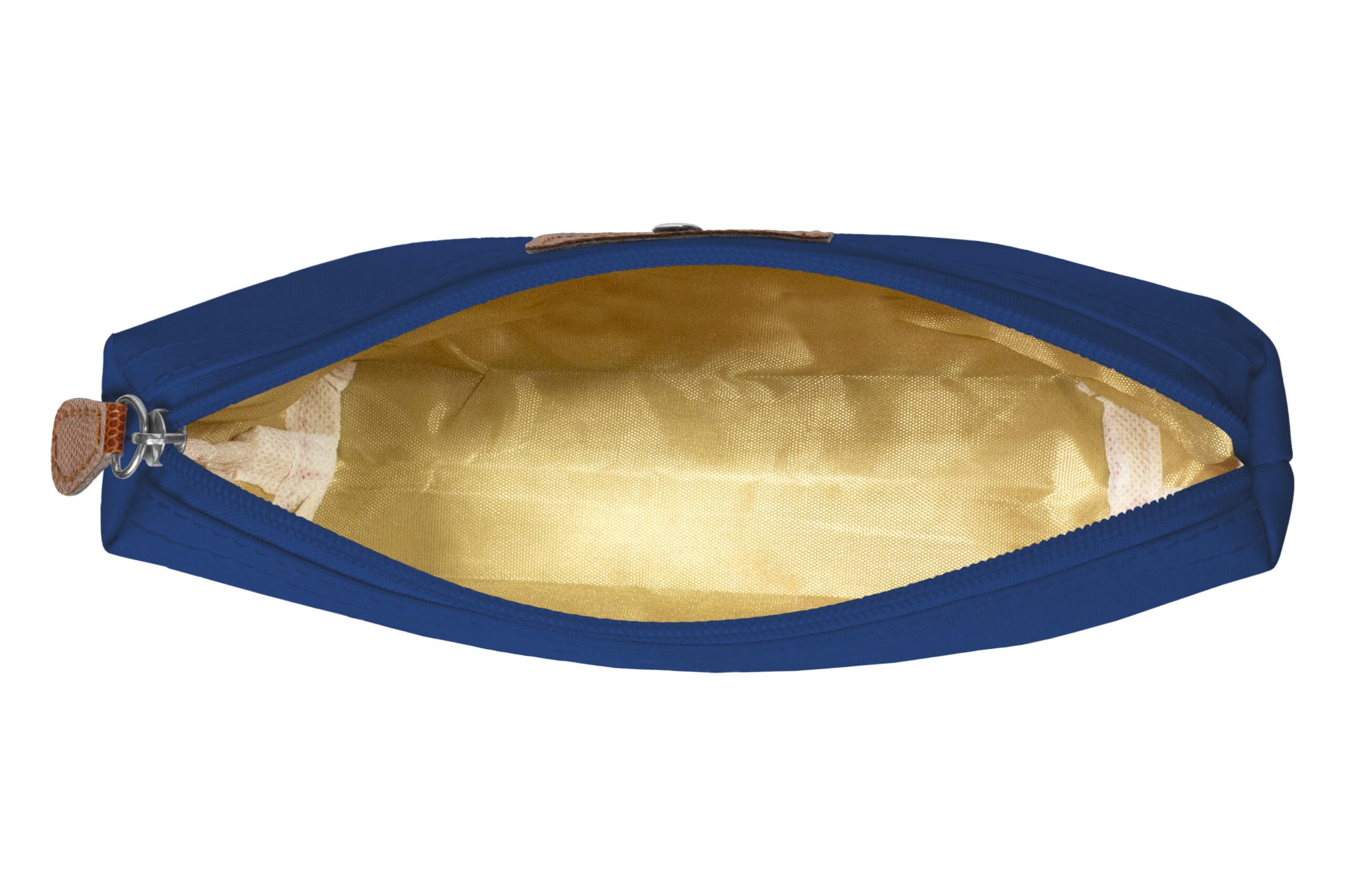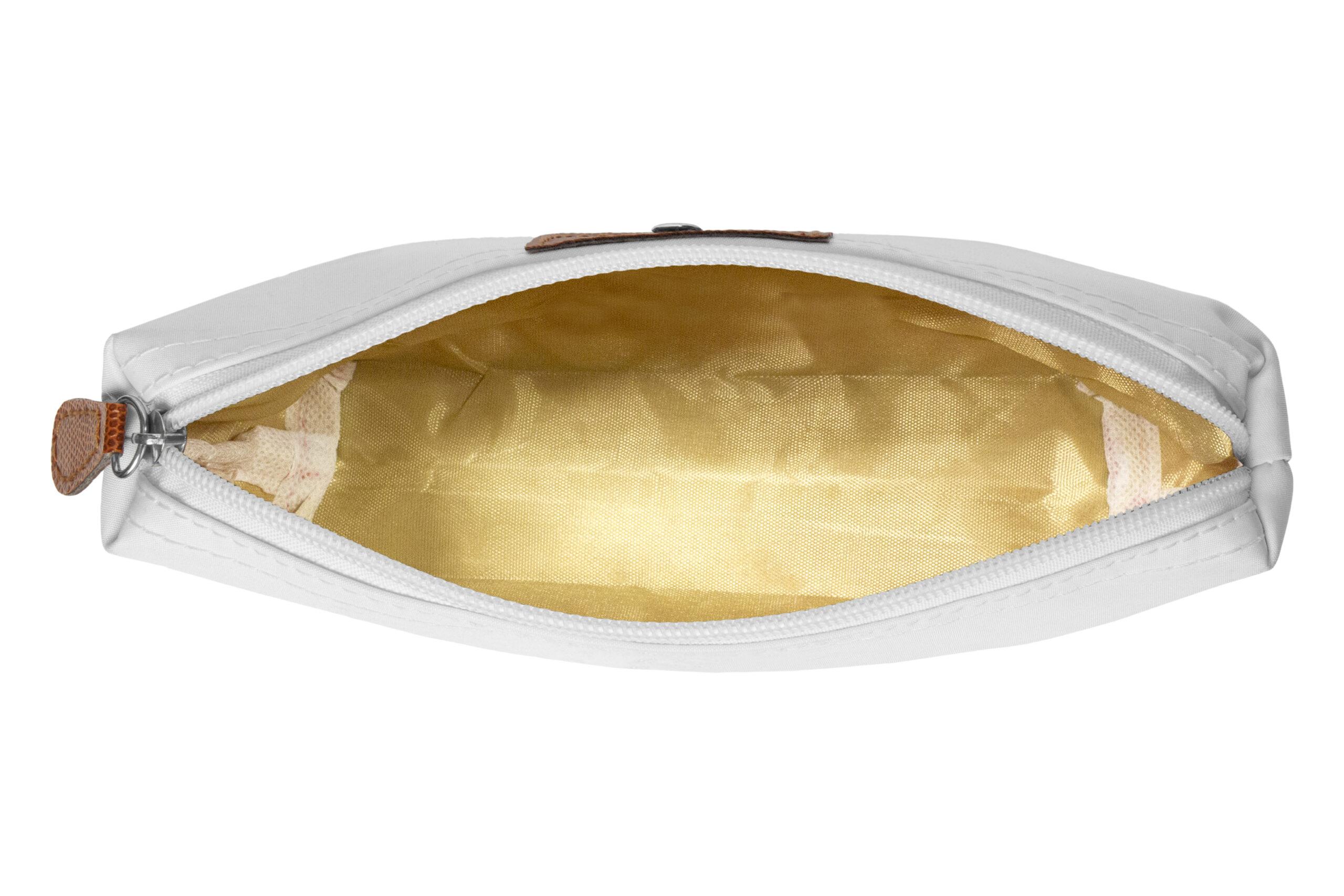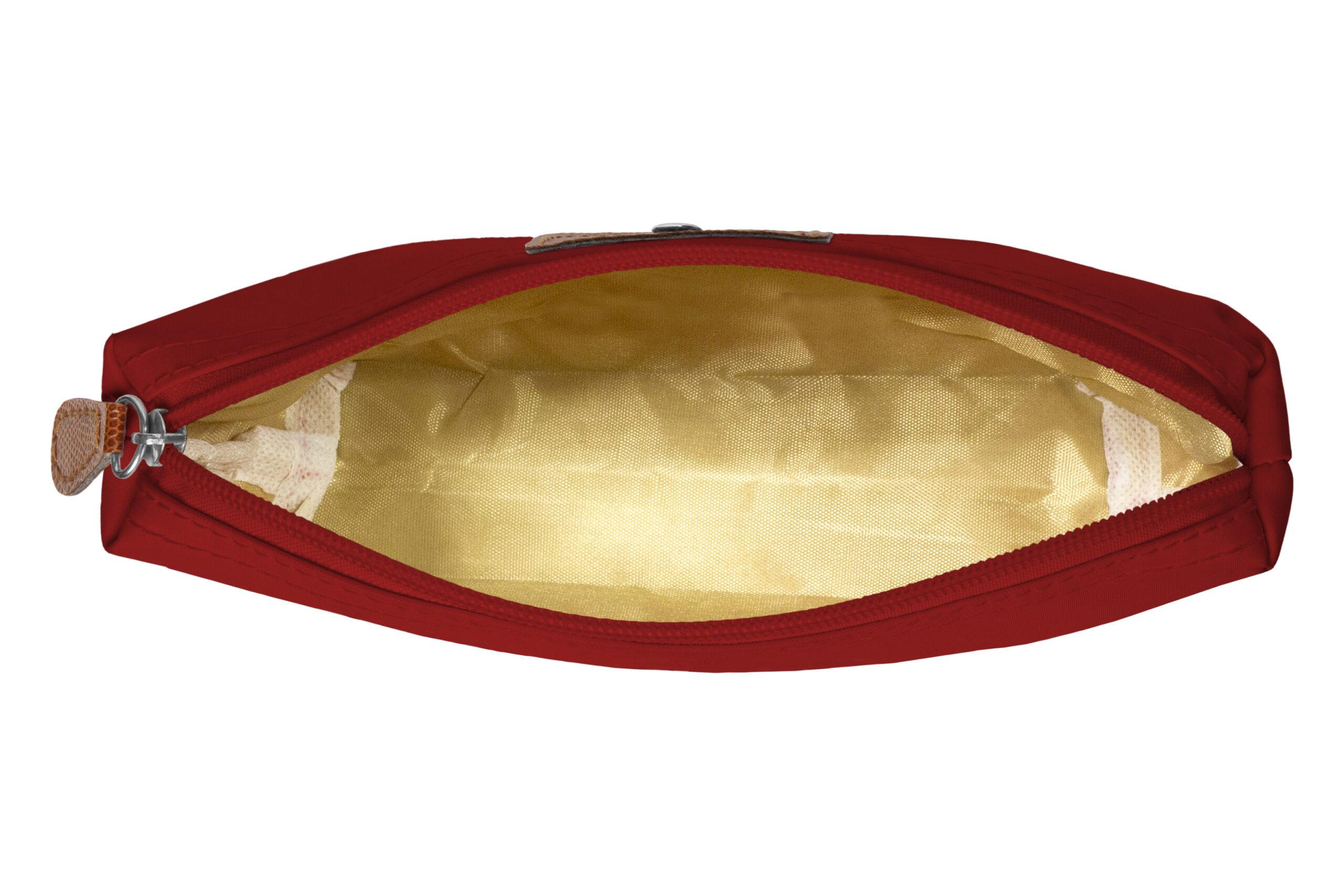 • Necessaire con detalles en símil cuero y un botón metálico en el frente.