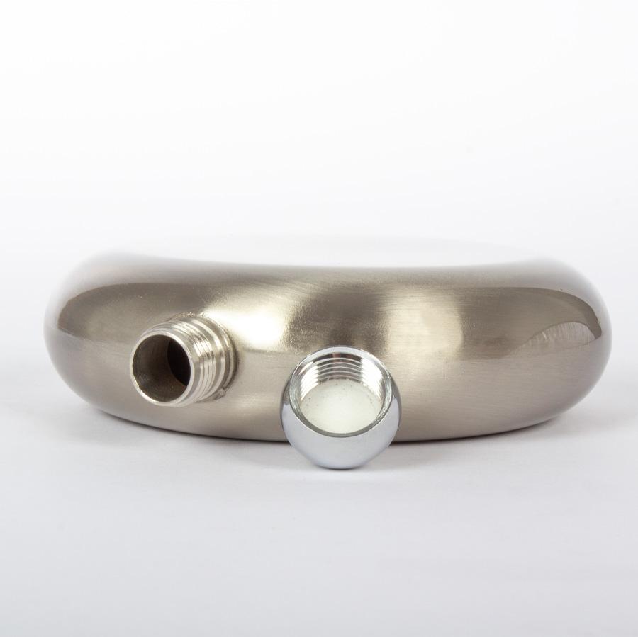 Licorera (Petaca) redonda de Acero Inoxidable con tapa redonda, para Sublimación. Presentación en bolsa PP translúcida + estuche de cartulina blanca.