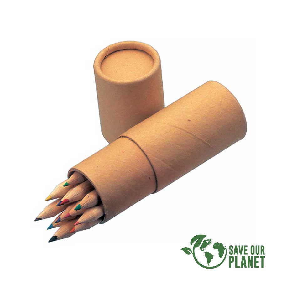 Set de 12 Lápices Grafito de Color, en Estuche cilíndrico de Cartón Reciclado. El regalo ideal para los niños.