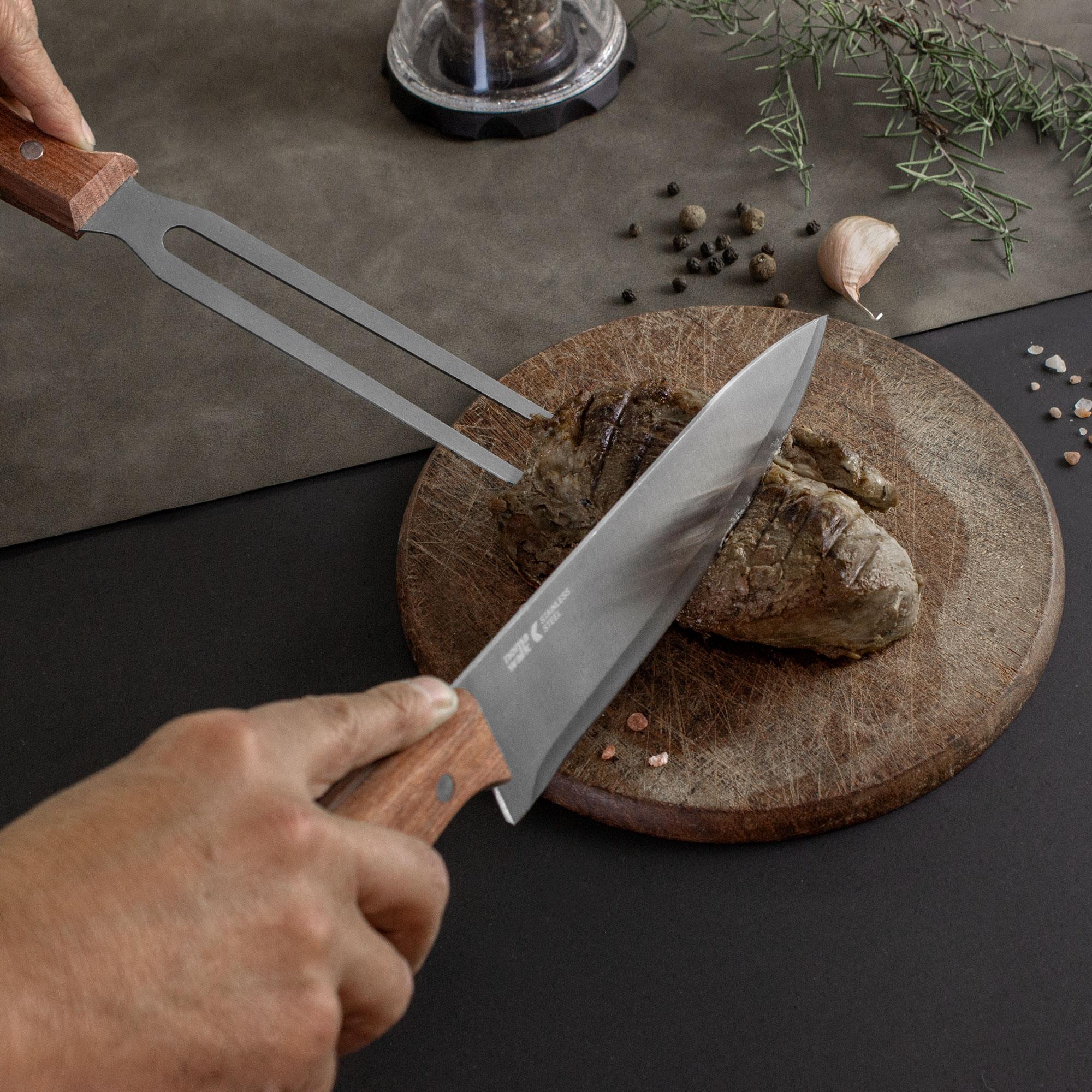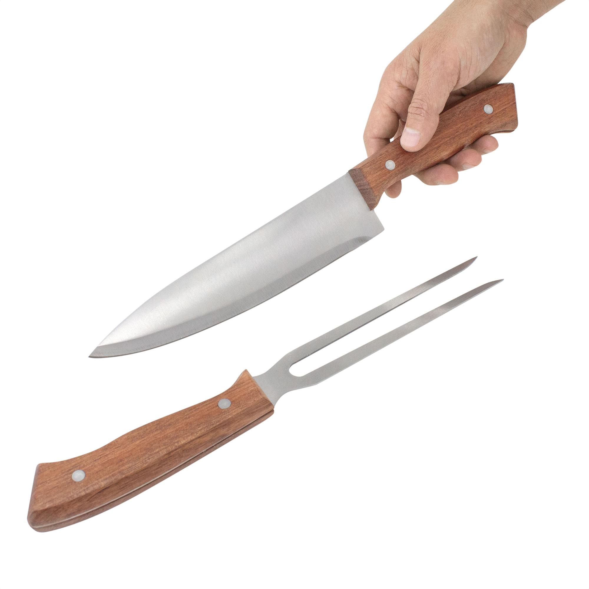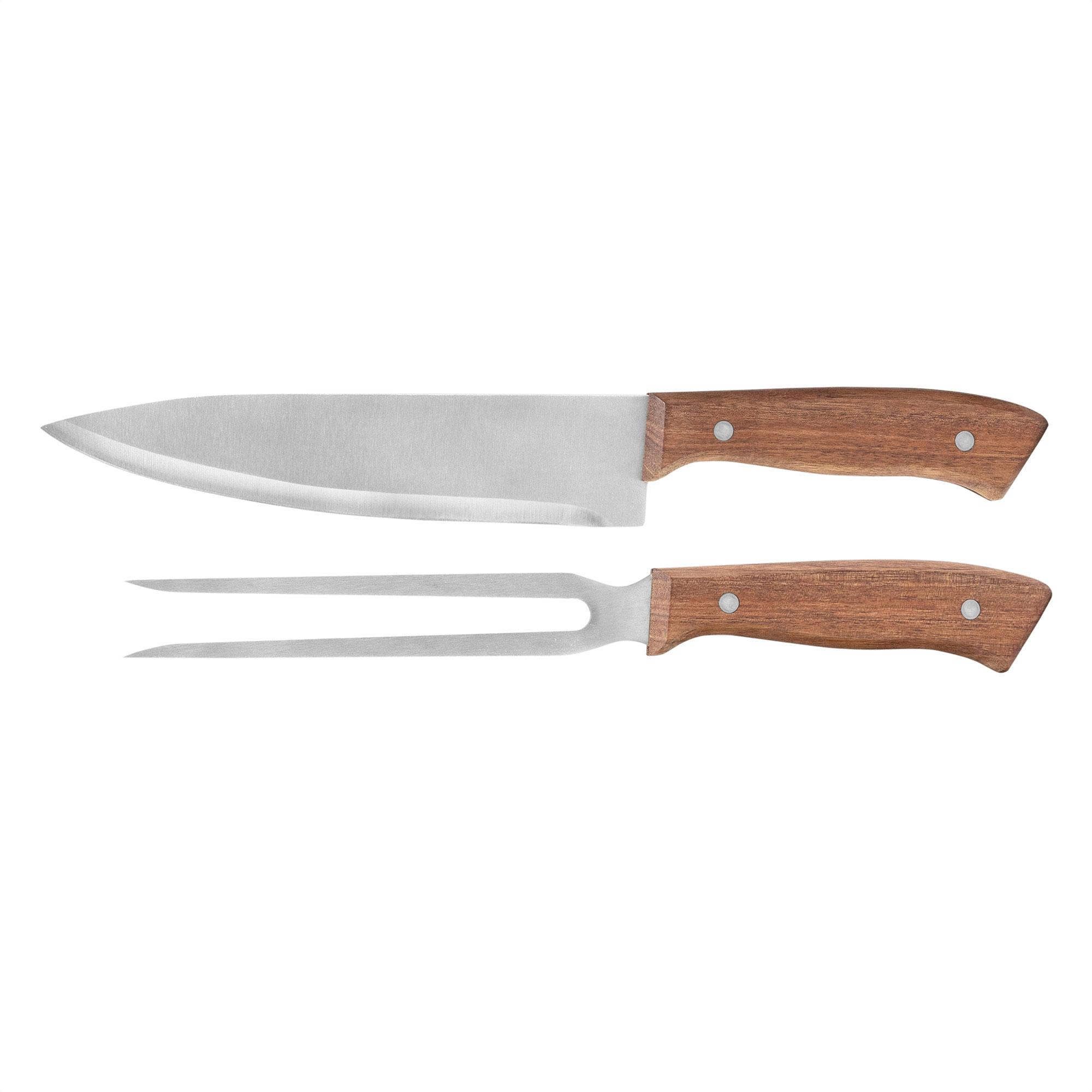 - Tenedor de 31,3 cm y 125 g., ambos con mango de madera.