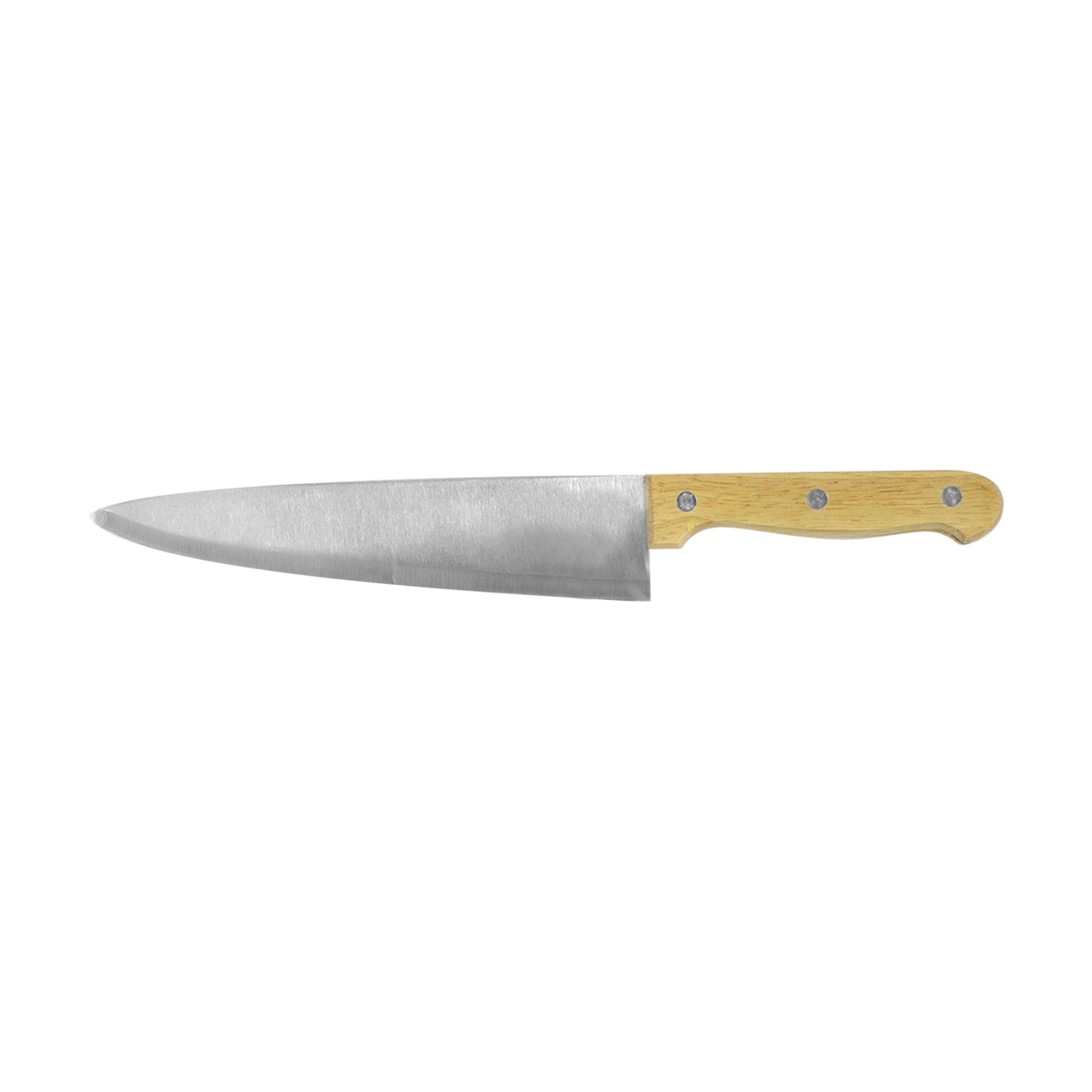 - Tenedor asador, cuchilla, cuchillo y chaira para afilar, todos con mango de madera barnizados.