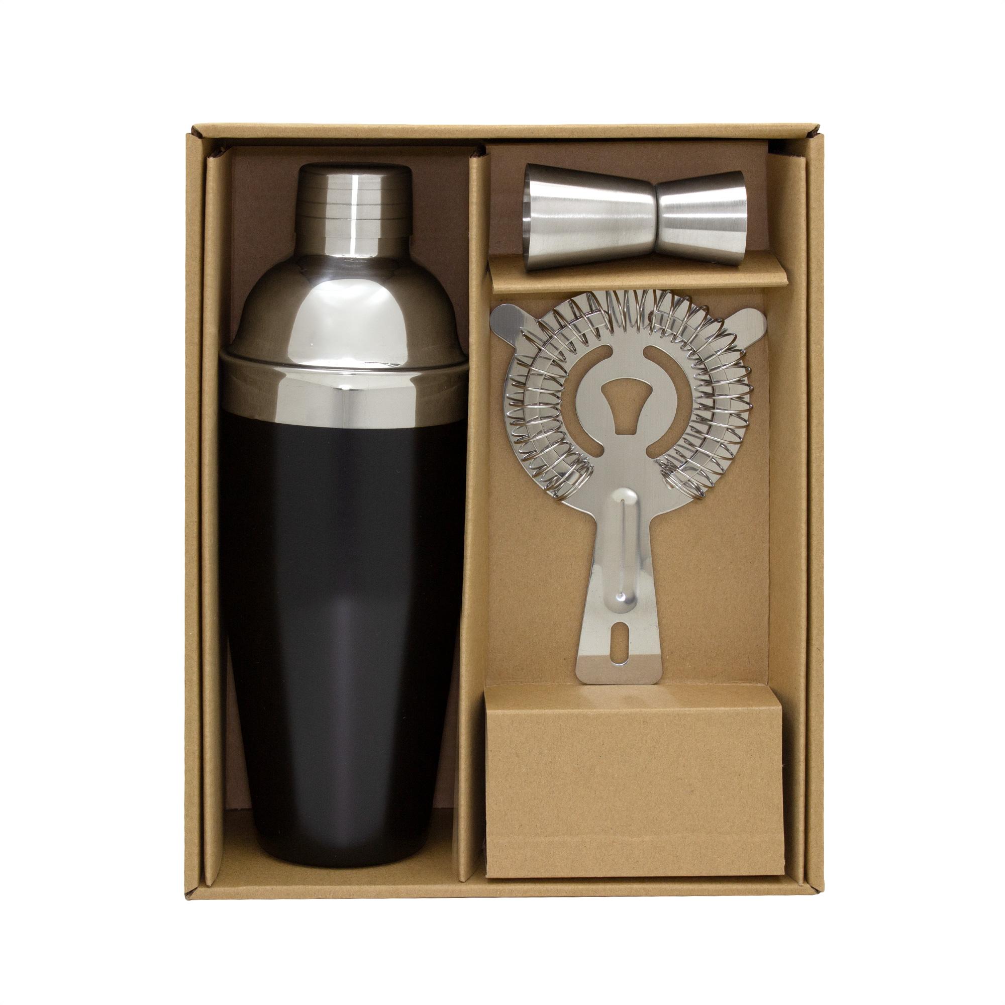 - Bartender Kit de tres piezas: Coctelera (Shaker) Ø 8 x 23,8 cm.