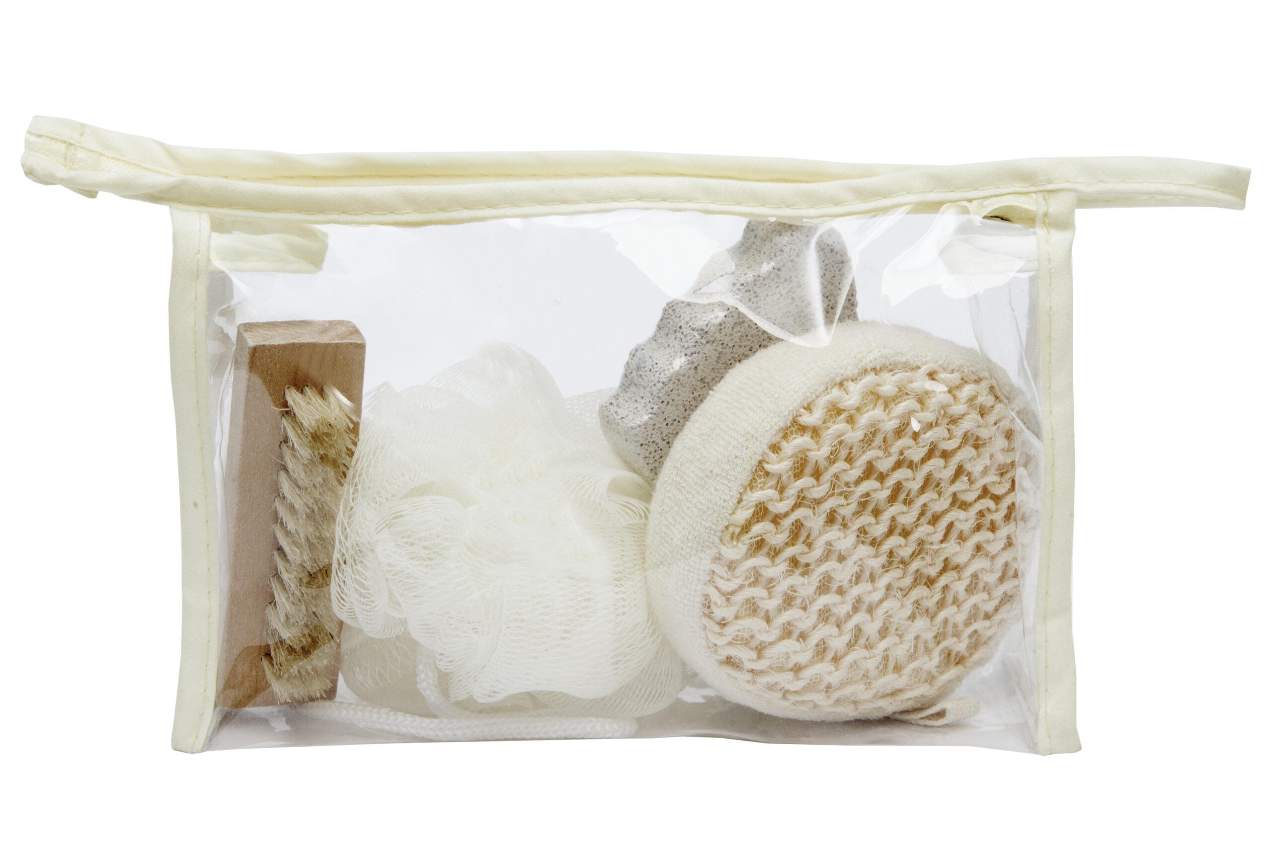 - Set con 2 esponjas una es exfoliante, piedra/lima y cepillo para uñas.