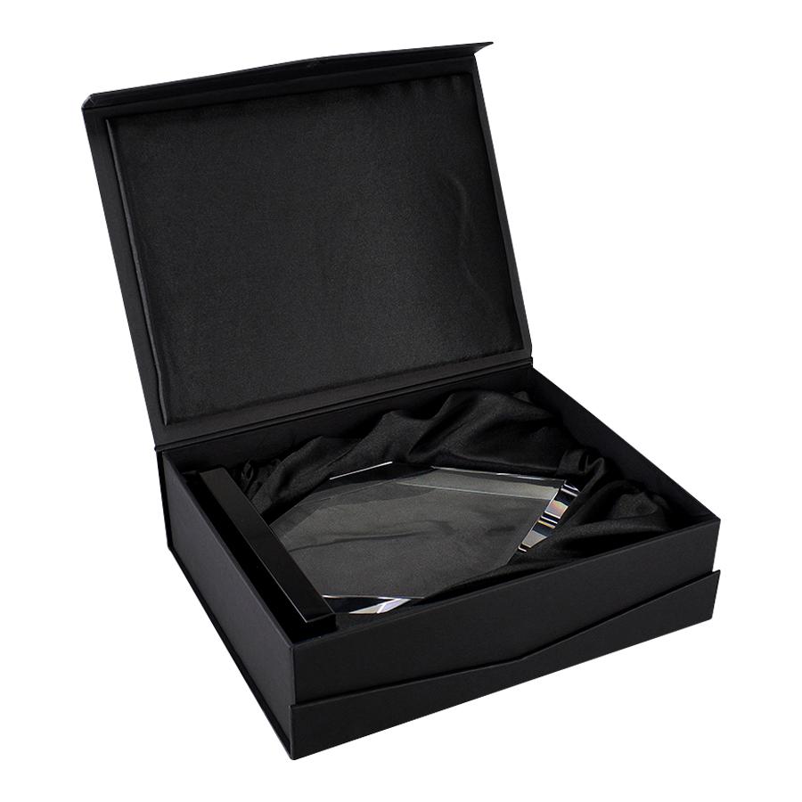 Deluxe Trofeo grande de Cristal modelo "Black diamond" con base negra. Presentación en caja de cartón forrado negro.