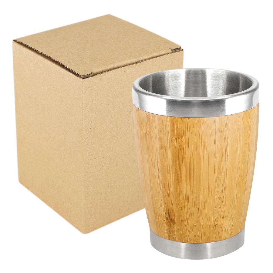 Vaso de madera de Bamboo, interior de Acero Inoxidable. Presentación en caja de cartón forrado natural.
